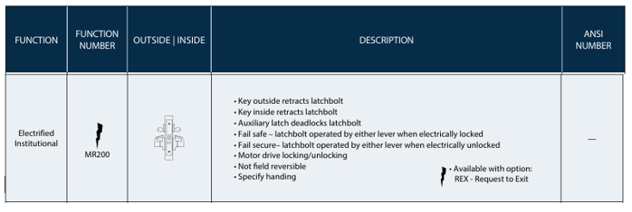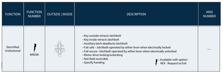 PDQ F Series - MR200 Electrified Institutional Function Mortise Lock