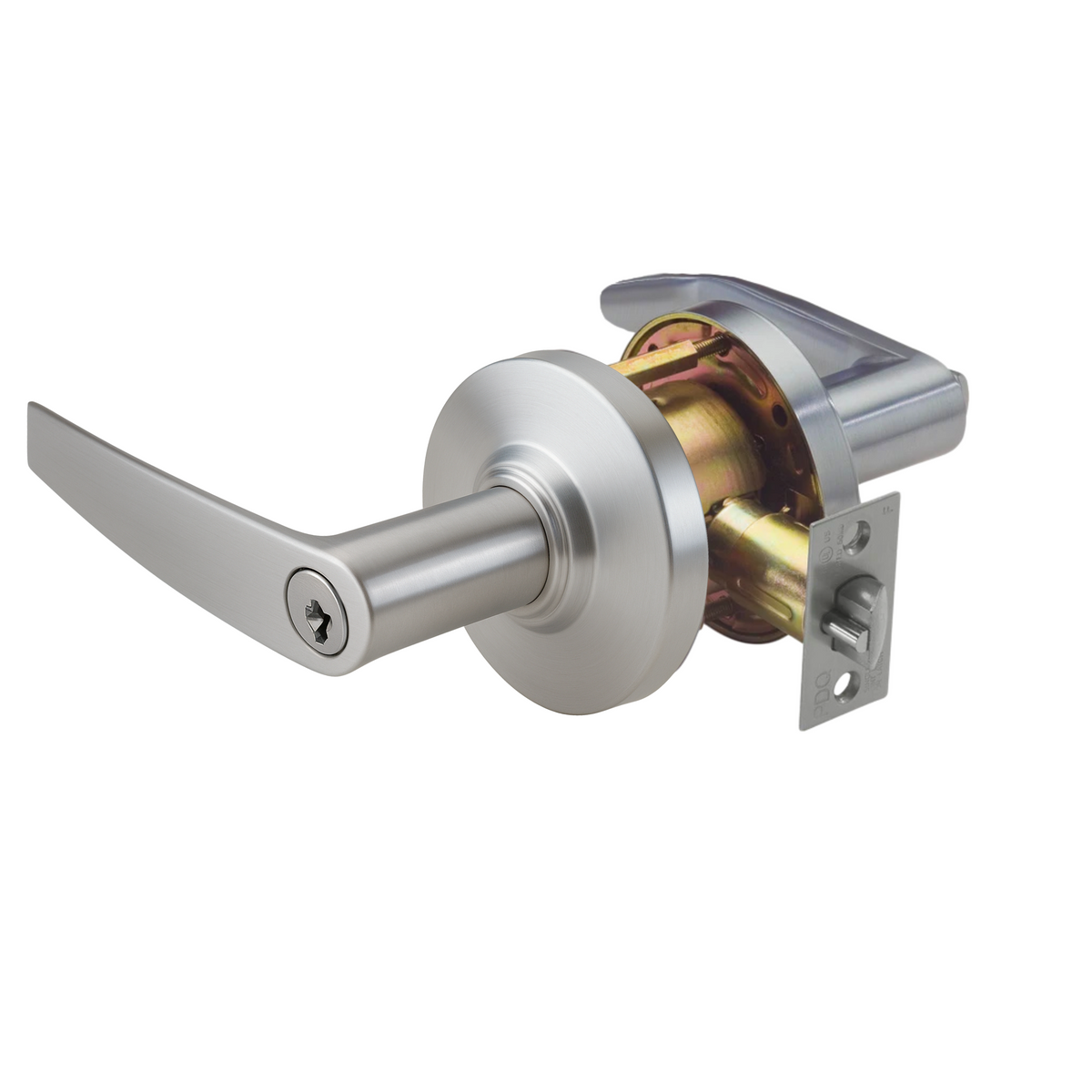 TRIM: Solid diecast PHL, BSN or MIA Levers   41° Lever Rotation Standard with 2-3/4” Backset   Wrought Brass Roses, Concealed Screws   Two (2) per Lock SCC standard (Schlage C Compatible)       Available for all keyed functions Large Format IC Core available for PHL Lever ONLY. 6-pin Brass Insert Cylinder keyed to 5-pins       Options: MK, CMK or GMK      DESIGN AND  MANUFACTURING  IN THE USA 65° Lever Rotation Standard with 3/4” latch for double doors (Ordered from factory only) and all 2-3/8”, 3-3/4” and 5” Backsets  (Ordered from factory only