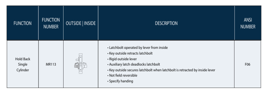 PDQ J Series - MR113 Classroom Hold back Single Cyl Function Mortise Lock