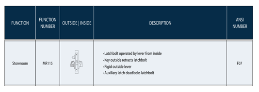 PDQ J Series - MR115 Storeroom Function Mortise Lock