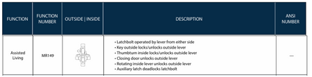 PDQ J Series - MR149 Assisted Living Function Mortise Lock