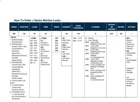 HAND: Most functions field reversible. Specify handing for Strikes, consult factory for details
