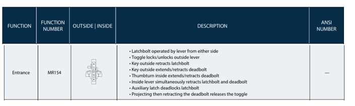PDQ J Series - MR154 Entrance Function Mortise Lock