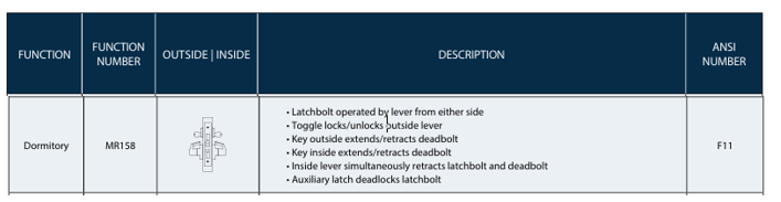 PDQ J Series - MR158 Dormitory Function Mortise Lock