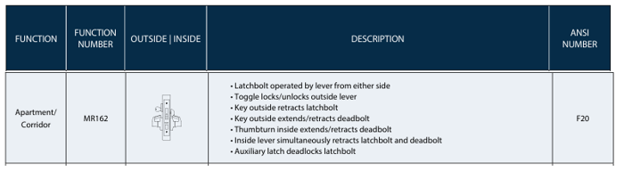 HAND: Most functions field reversible. Specify handing for Strikes, consult factory for details