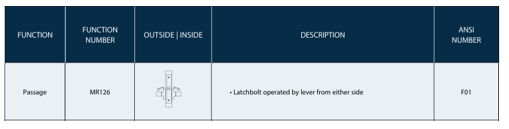 PDQ F Series - MR126 Passage F Series Function Mortise Lock