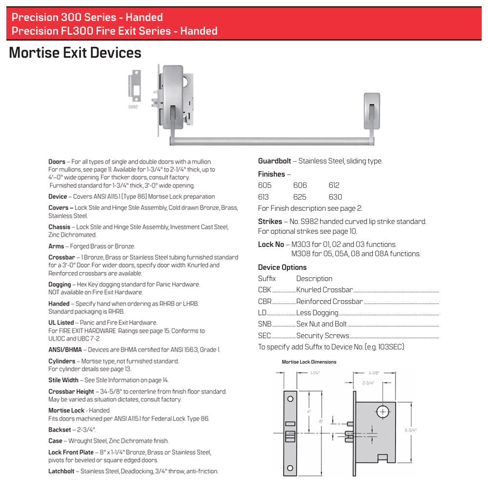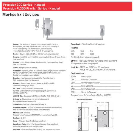 The Precision 300 Series mortise exit device delivers top-tier durability, smooth operation, and trusted life-safety performance for high-traffic commercial environments. Built with premium materials and certified to the highest industry standards, this handed exit device is ideal for facilities that require dependable egress and long-term security.