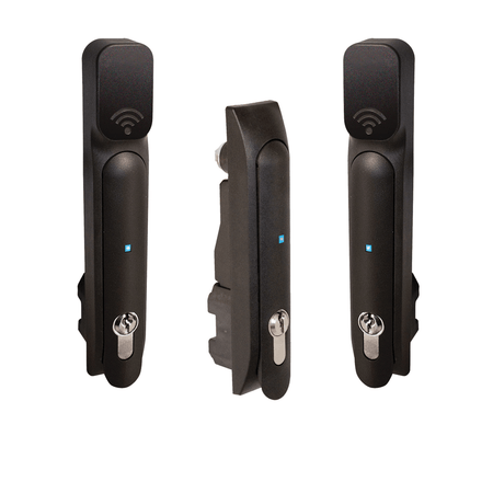 The RCI 3525 Rack Handle Lock Series provides intelligent and convenient electronic locking and monitoring capabilities. The electronic locking rack handle provides the functionality of a manual latching system with the added benefit of electronic locking for access control and remote access control monitoring. Integrated lock sensors provide local LED indication plus generate output signals for remote monitoring.