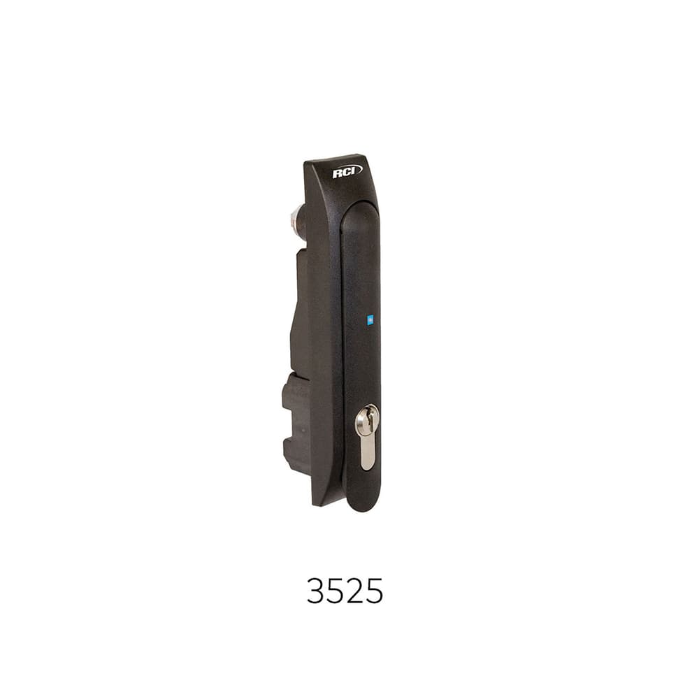 - RCI 3525: Electronic Rack Handle lock Standard electronic/mechanical rack handle lock; independent reader can be used.