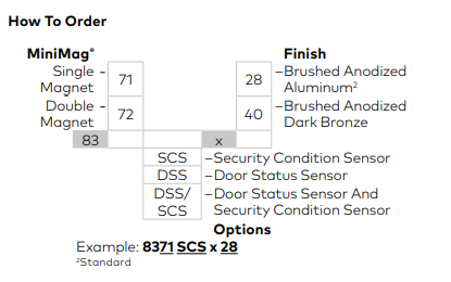- Optional Door Status Sensor (DSS)/ Security Condition Sensor (SCS) Available