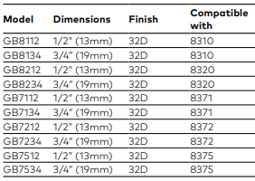 | GB8134 | 3/4” (19mm) | 32D | 8310 |