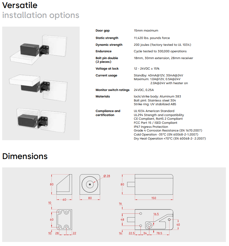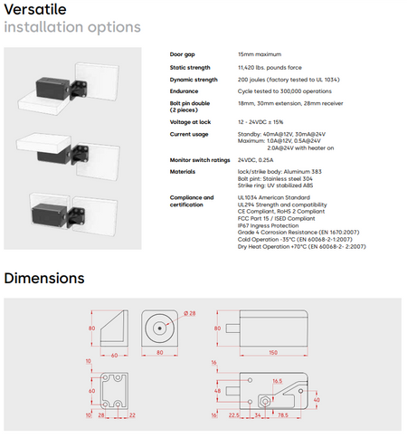 - Selectable fail safe / fail secure modes, three user selectable control methods, and multiple attempts to lock or unlock, ensures that the YG80 is ready for a wide range of application requirements
