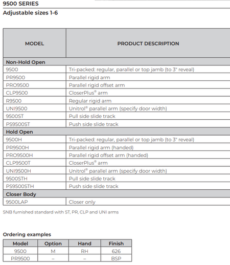 • Hold open can be set for 85°, 90°, 95°, or 100°