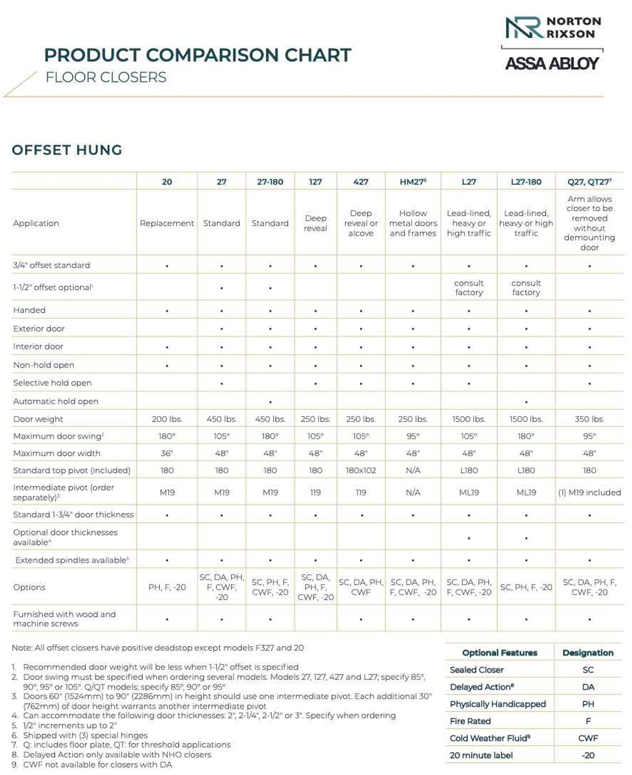 Norton Rixson 427N 3/4" Offset Heavy Duty Floor Closer Catalog