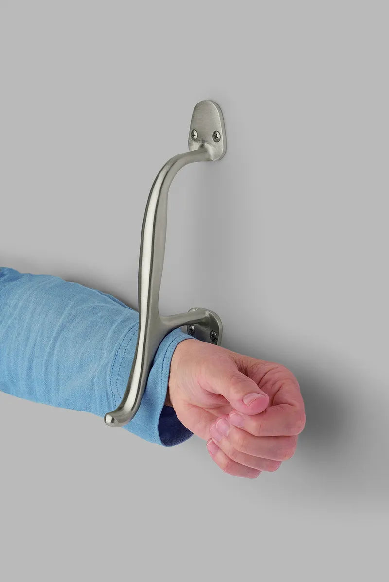 The 193 Hands-Free Hand/Arm Door Pull provides a versatile and hygienic way to open doors. Users can either pull on the grip or conveniently hook their arm underneath for a touchless solution, reducing the risk of germs and offering flexibility in door operation.