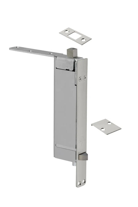 The non-handed, fully automatic 2940 Automatic Flush Bolt (Top Bolt Only) is for use on select wood door types. This product's override feature prevents damage to doors or bolts if bolt heads are blocked from entering strikes, while its thermal lock automatically locks the inactive door under high heat conditions.