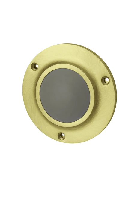 The large, cast brass 415 Wall Stop features a flush back plate and convex rubber bumper, effectively dispersing the impact of heavy or uncontrolled door contact.