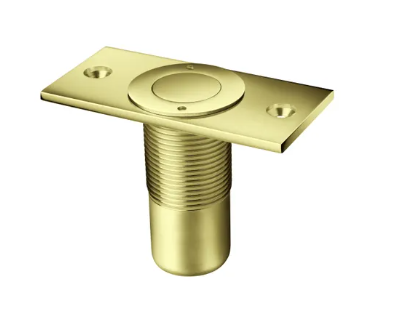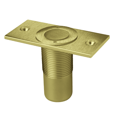 The brass 570 Dust Proof Strike, which works with all Rockwood manual and automatic flush bolts, features a removable face plate for use with thresholds and adjustable height for carpeted areas.