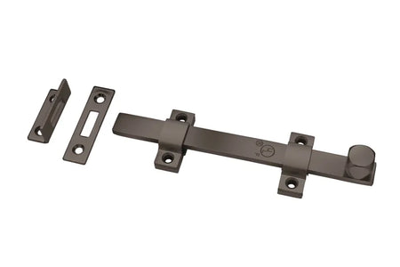 The 580 (steel, stainless steel) Series Surface Bolts both include a universal top strike and a mortise bottom strike. The 580 features bolts that are UL listed for use on inactive leaf of a pair of 3-hour labeled fire doors, while the 582 has bracket for padlock (not included).
