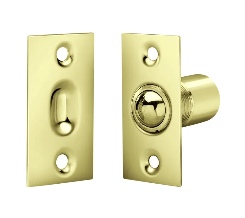 The brass 910 (narrow strike) and 911 (wide strike) adjustable ball catches feature square flat corners and dual adjustment for door clearance and holding strength.