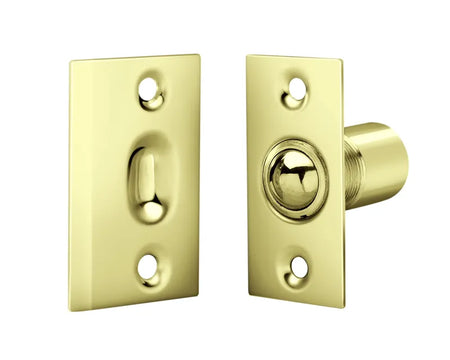 The brass 910 (narrow strike) and 911 (wide strike) adjustable ball catches feature square flat corners and dual adjustment for door clearance and holding strength.
