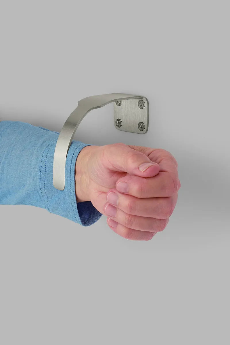The stainless steel AP1141 Hands-Free Arm Pull (1-1/2" to 3/4" pull width) offers a convenient and hygienic means of opening doors, suitable for both new installations and retrofits, reducing the potential transmission of germs.