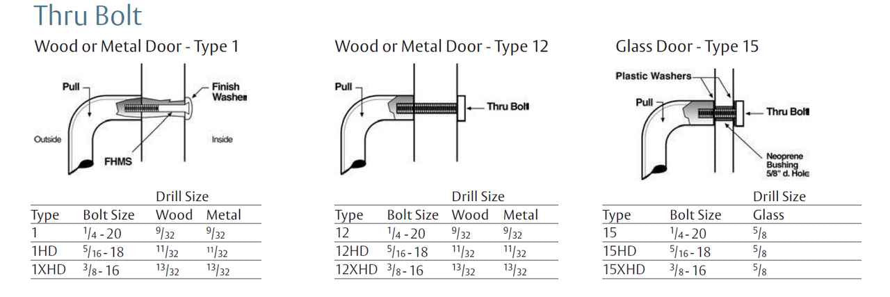 • Fastener: 1/4 - 20 x 2-1/4" thru bolt & finish washer