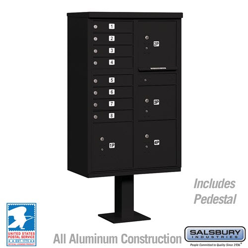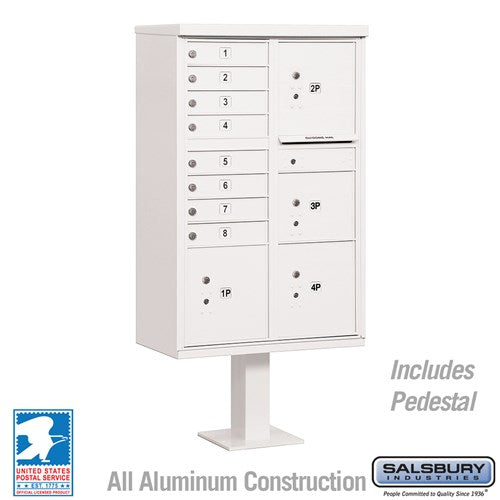 Cluster Box Units (CBU’s) manufactured by Salsbury Industries provide USPS access and offer a secure means of receiving mail and packages. They are ideal for commercial use or residential applications such as housing developments, apartments or townhouses. The 3300 Series is a USPS accessible CBU that includes a matching pedestal. Our cluster mailboxes are an excellent choice for durability because they are constructed of heavy-duty aluminum and stainless steel. See the additional features of our CBU’s below.