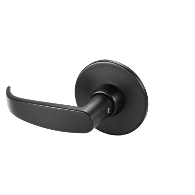- Latch by either lever unless outside lever is locked by push button in inside lever