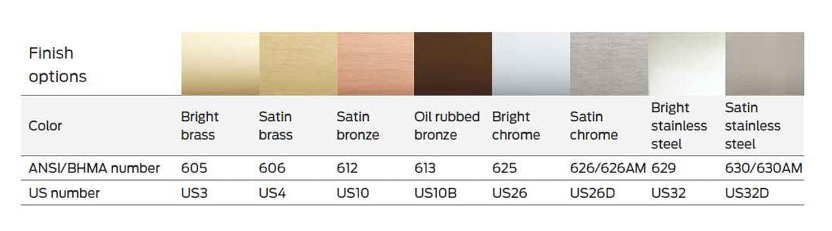 - Eight available finishes with options for antimicrobial coating