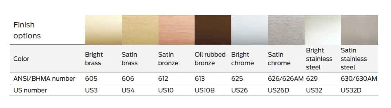 - Strike: ASA strike 1-1⁄4" x 4-7⁄8" (32 mm x 124 mm) standard; bent tab strike optional 1-1/4" X" x 4-7/8" " (32 mm x 124 mm); dust box included