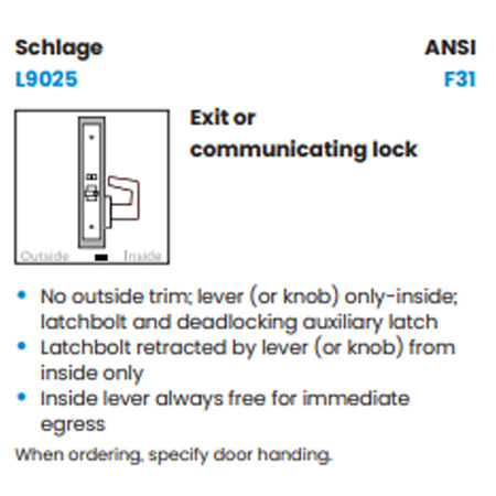 - L/LV9070 Classroom lock (ANSI F05) (*)