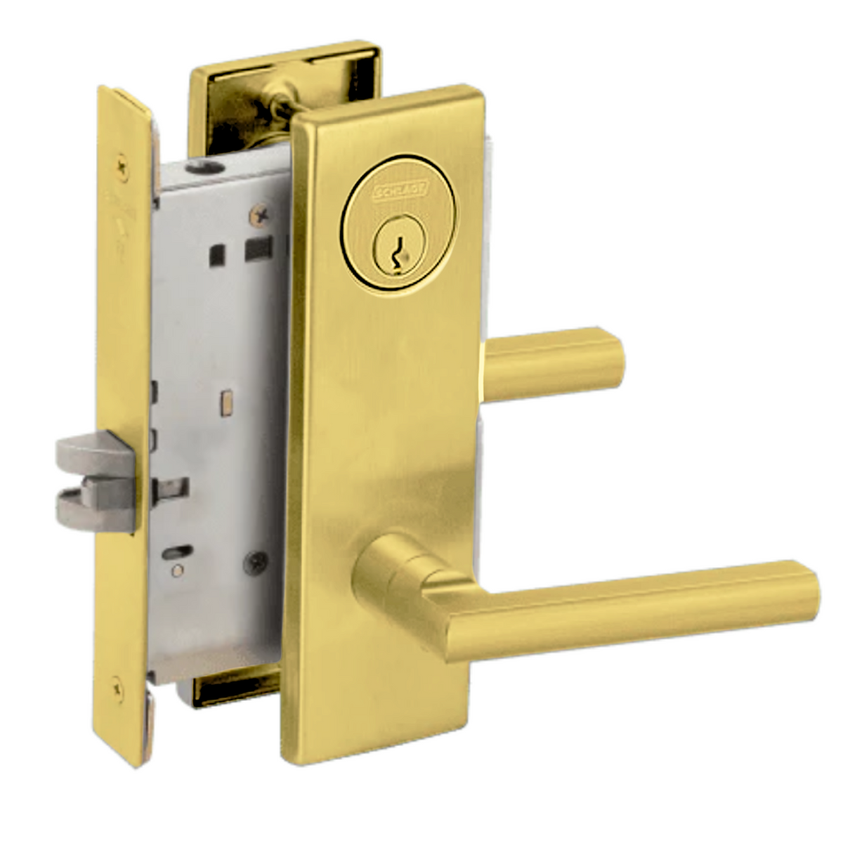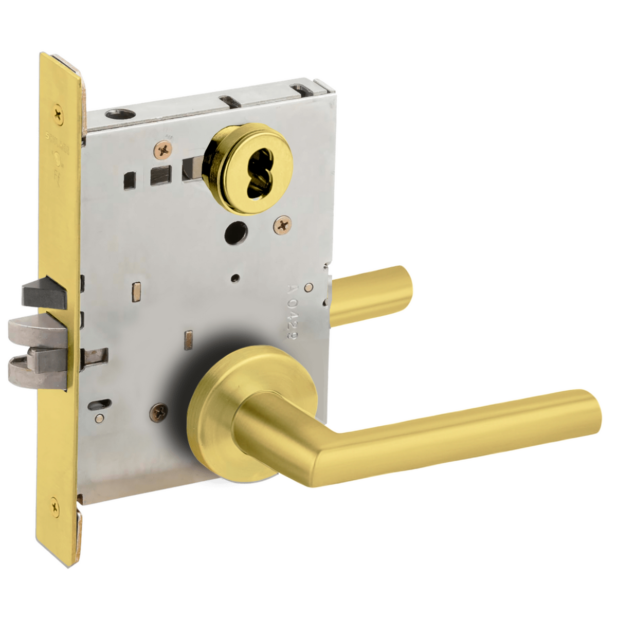 606 - Satin Brass / L - Less Conventional Cylinder / 07 Lever with L Escutcheon