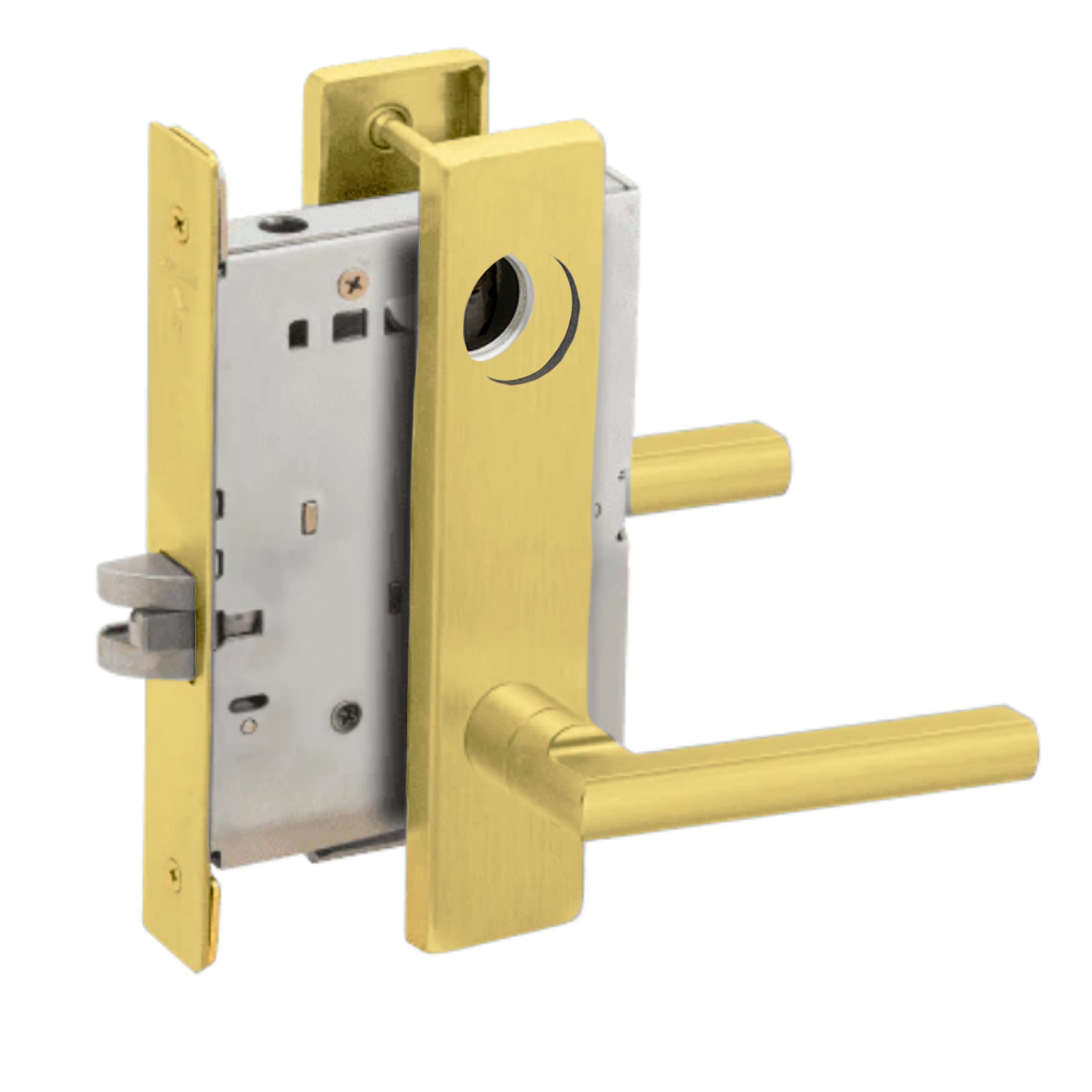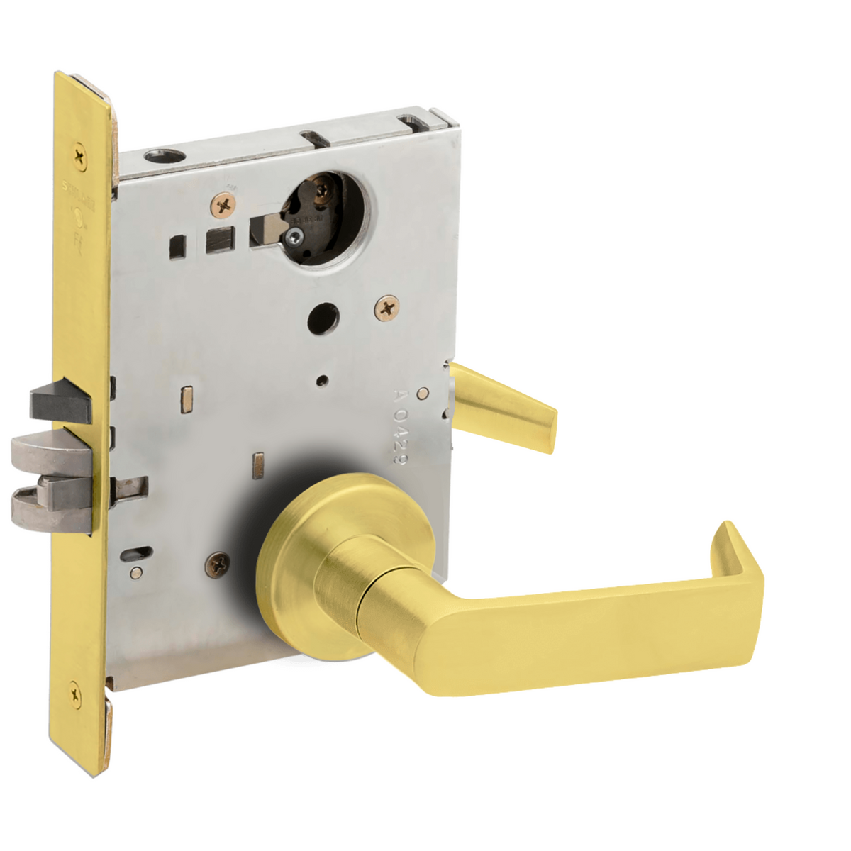 606 - Satin Brass / L - Less Conventional Cylinder / Latitude Lever with L Escutcheon