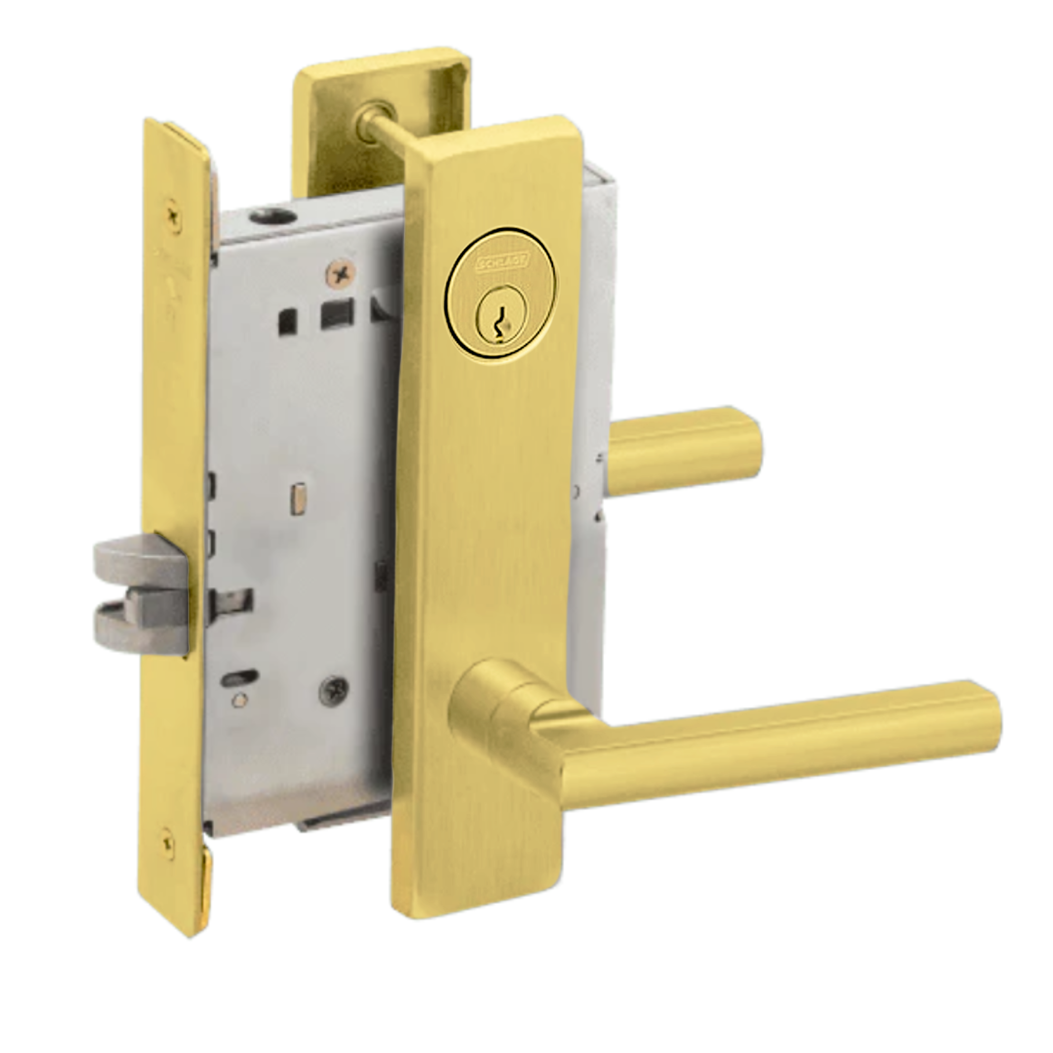 606 - Satin Brass / L - Less Conventional Cylinder / 17 Lever with L Escutcheon