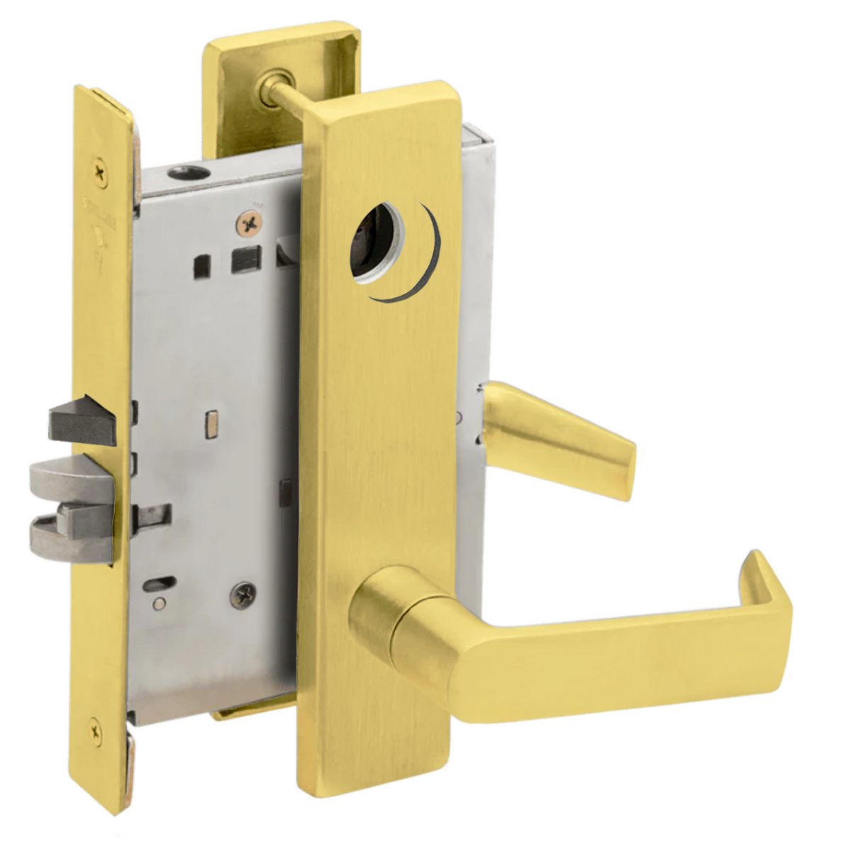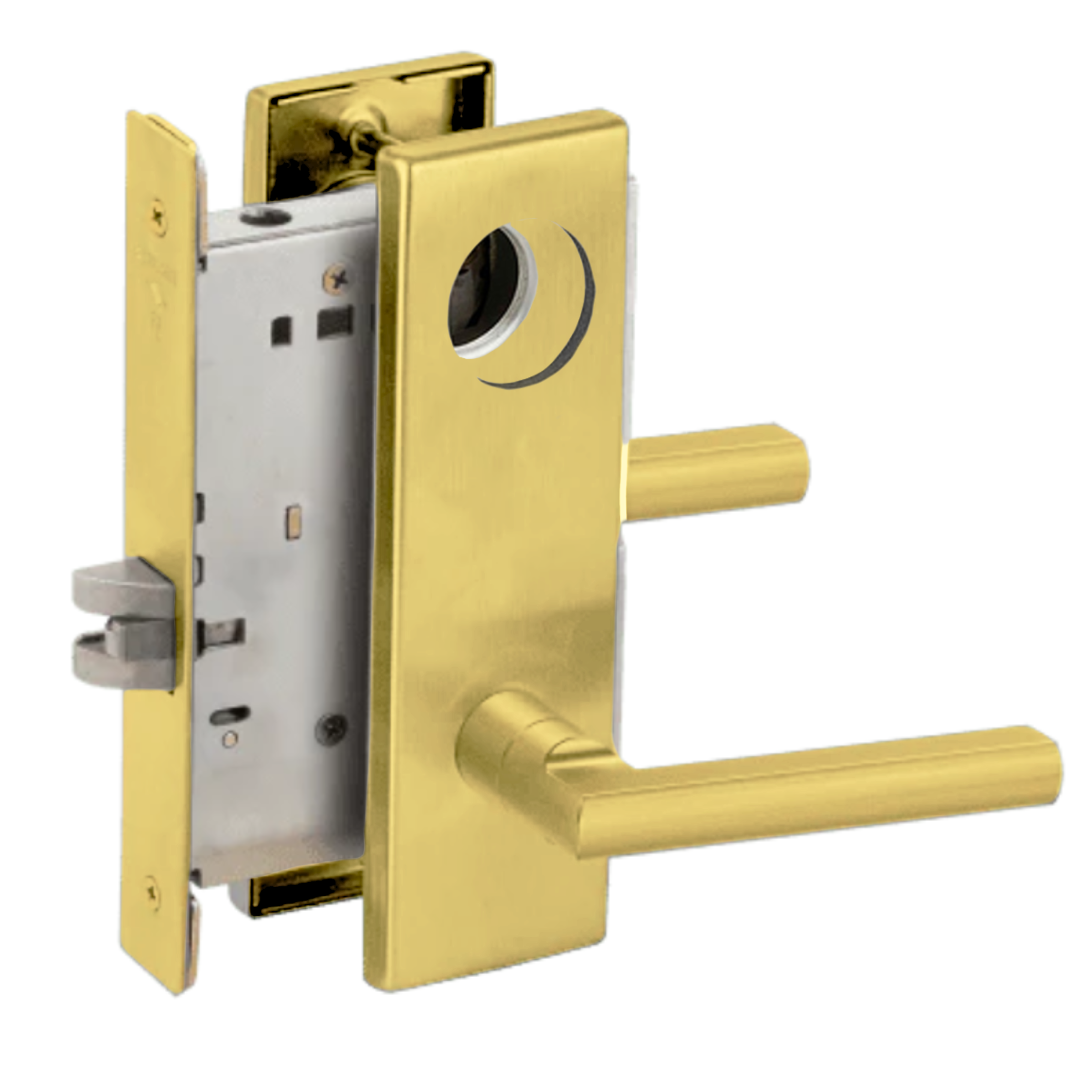 606 - Satin Brass / L - Less Conventional Cylinder / Latitude Lever with N Escutcheon
