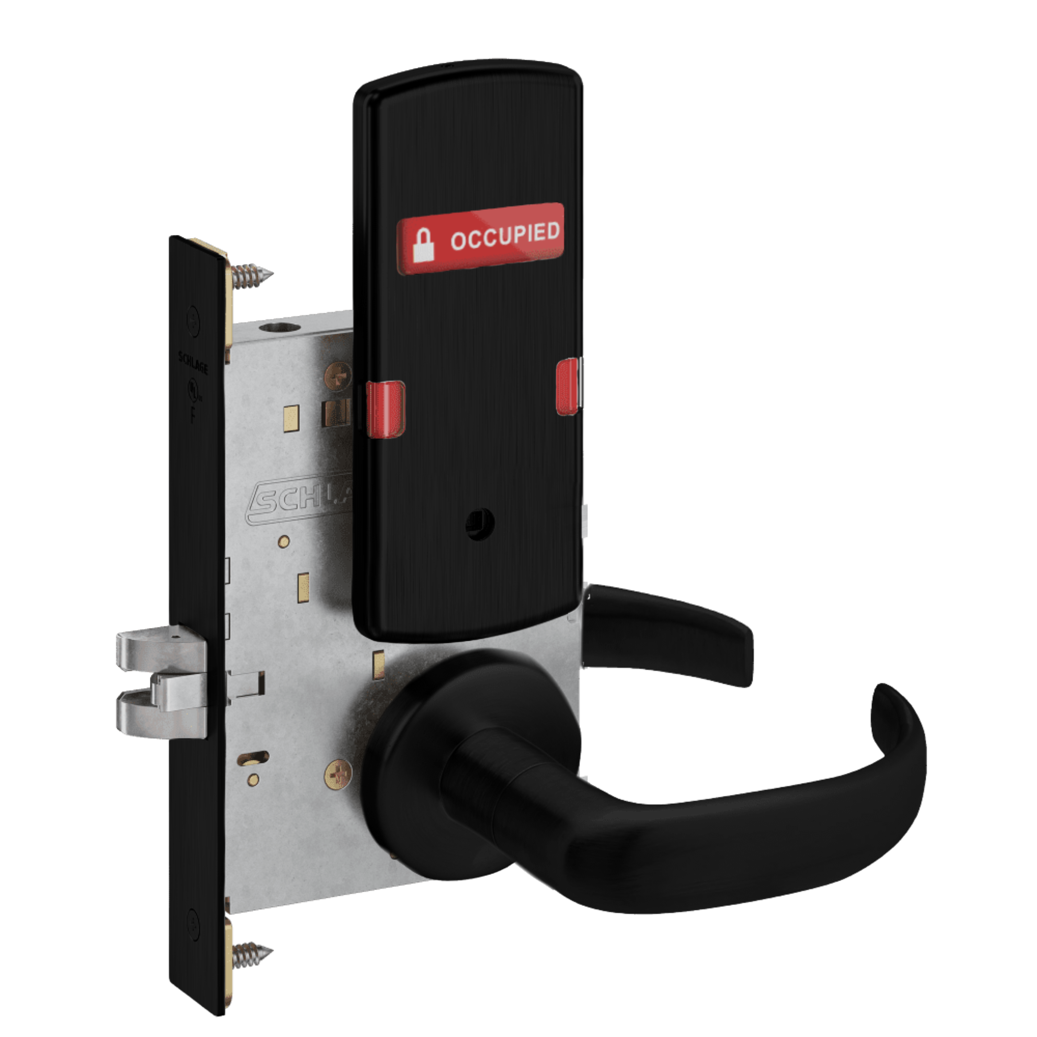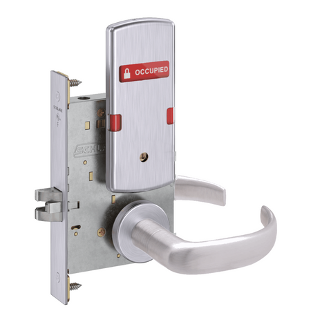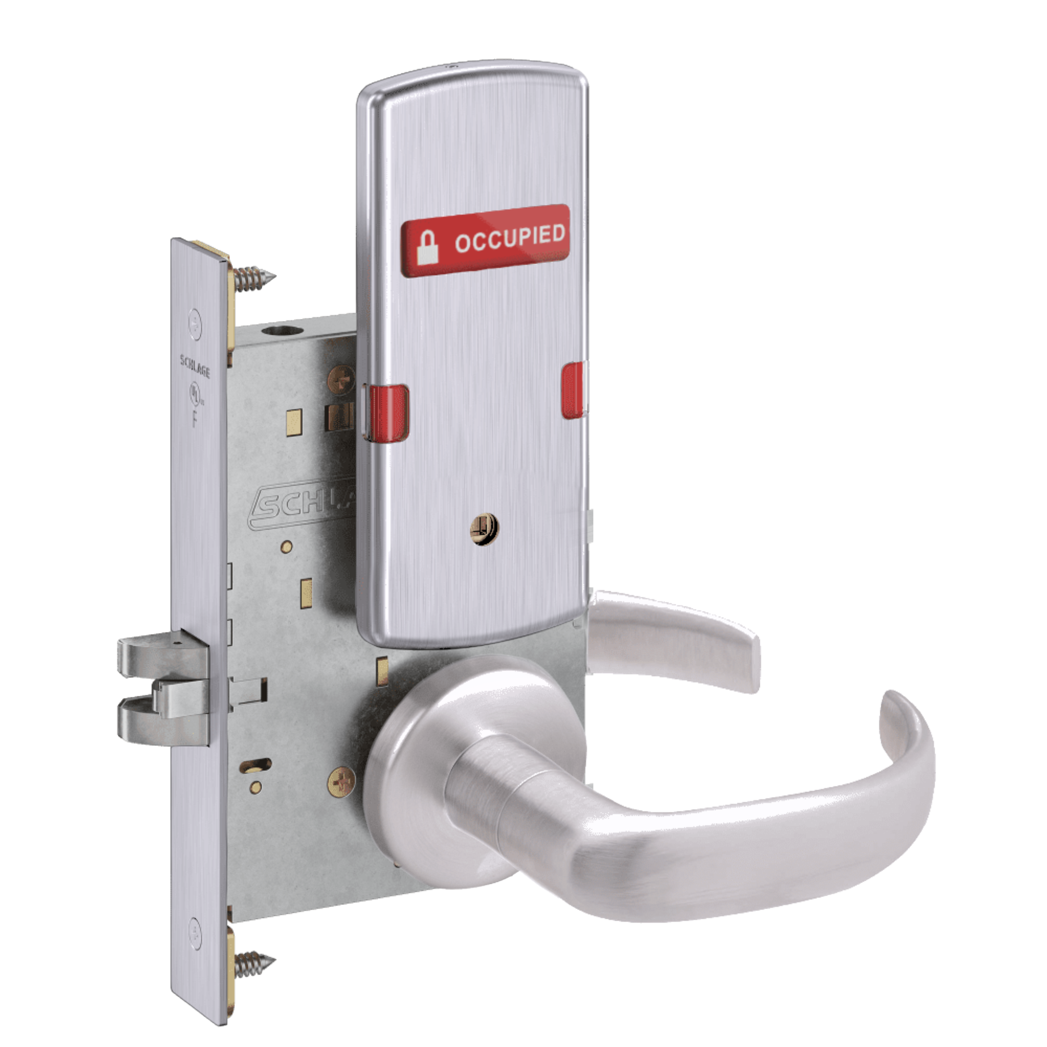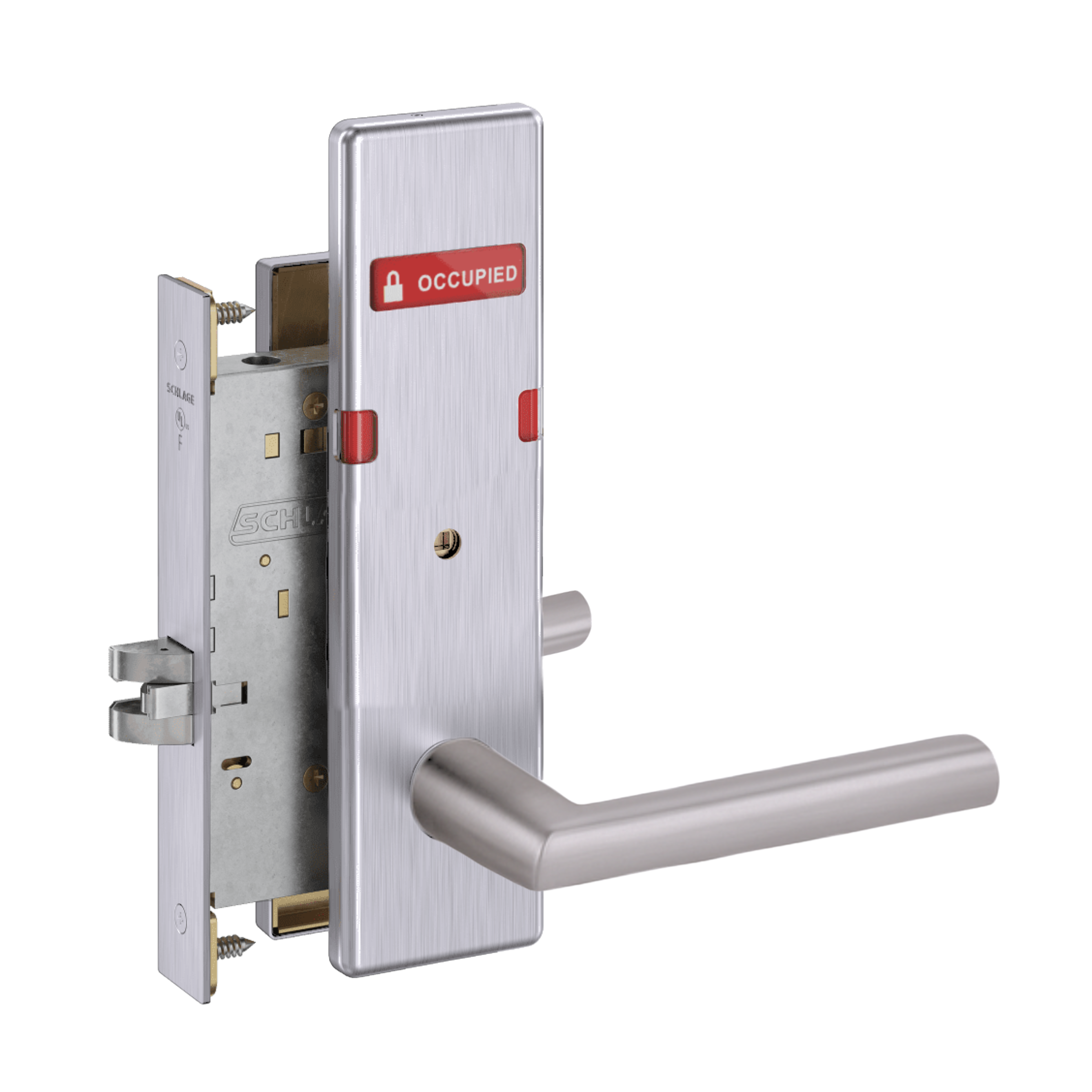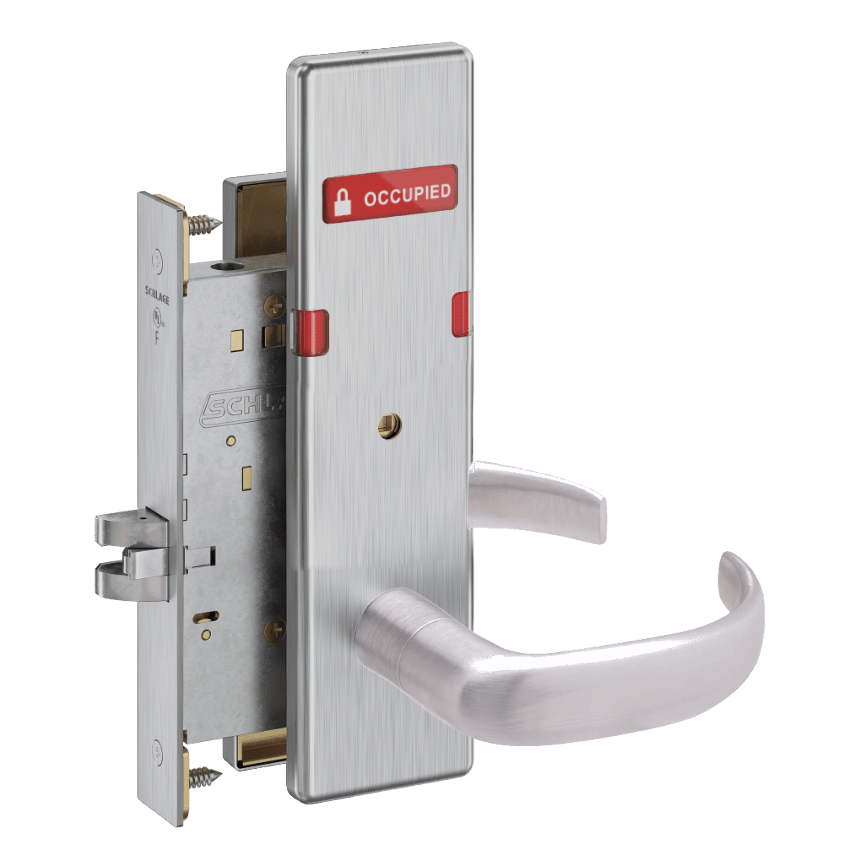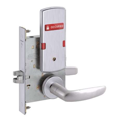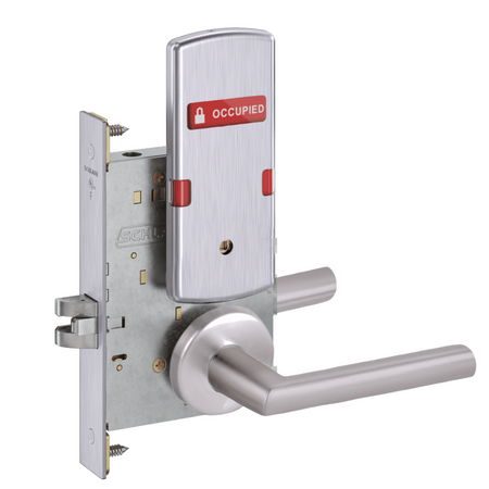 Schlage L9444 - Grade 1 Privacy With Deadbolt and Coin Turner Mortise Lock, Non-Keyed, Exterior Indicator "VACANT/OCCUPIED"