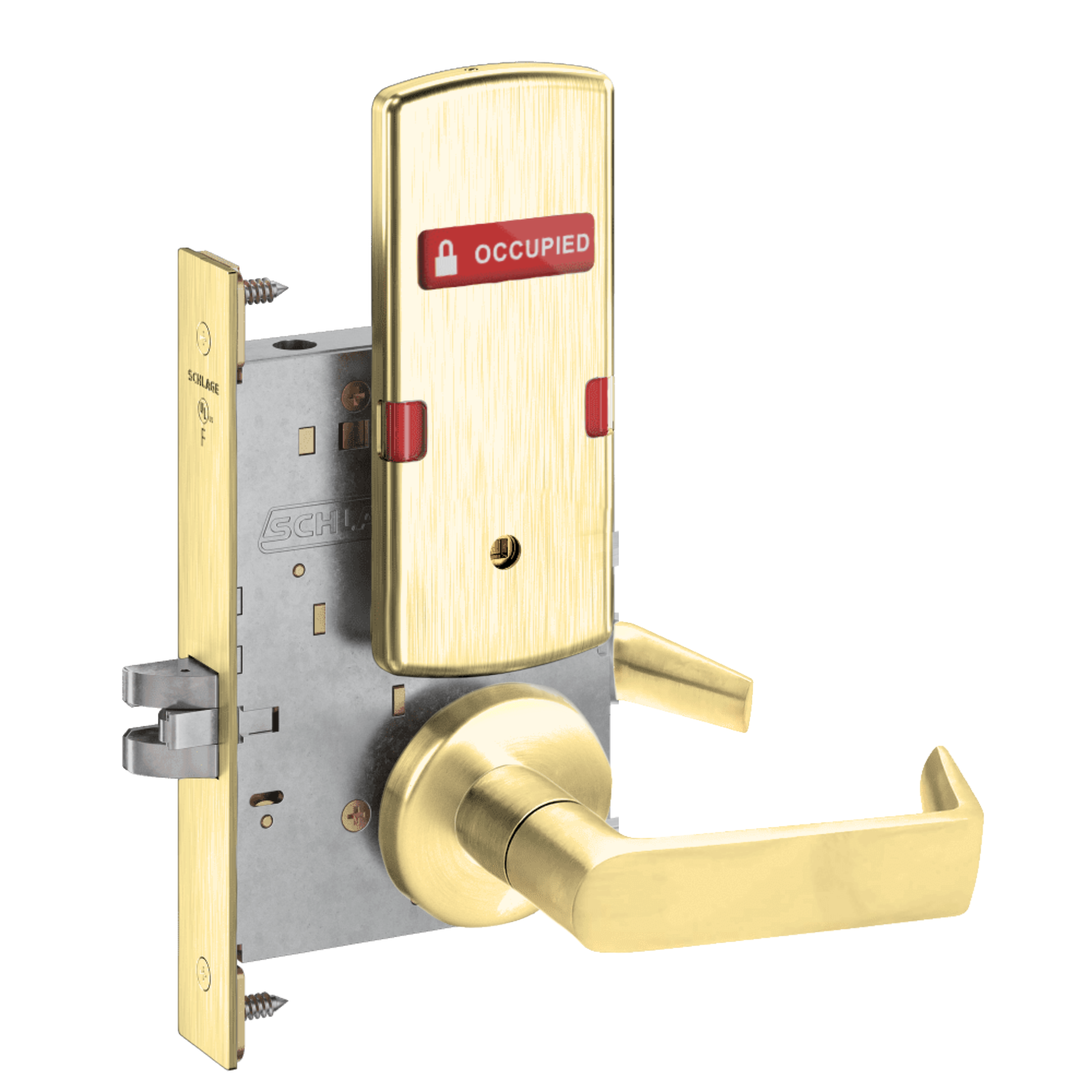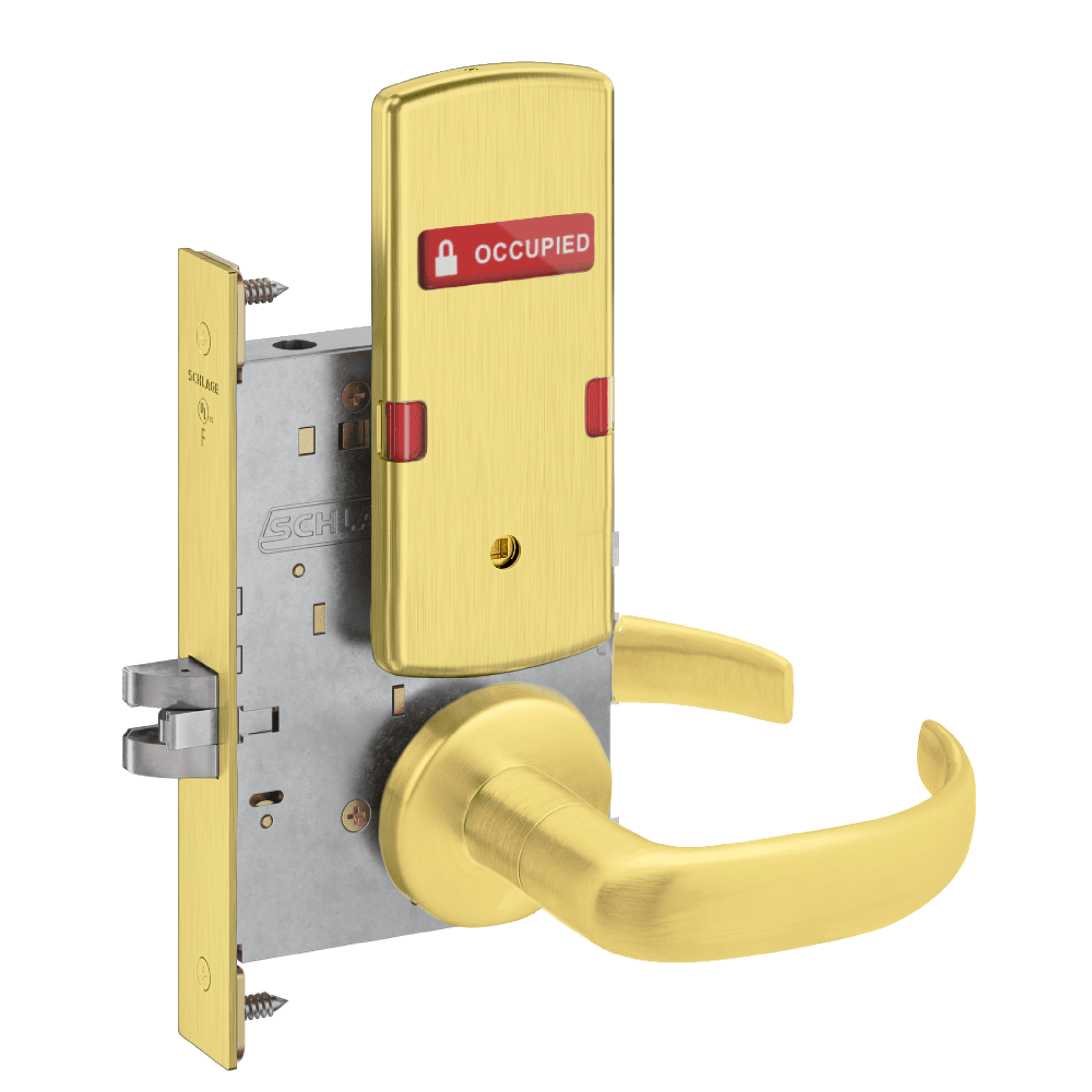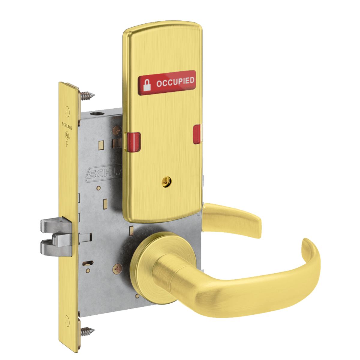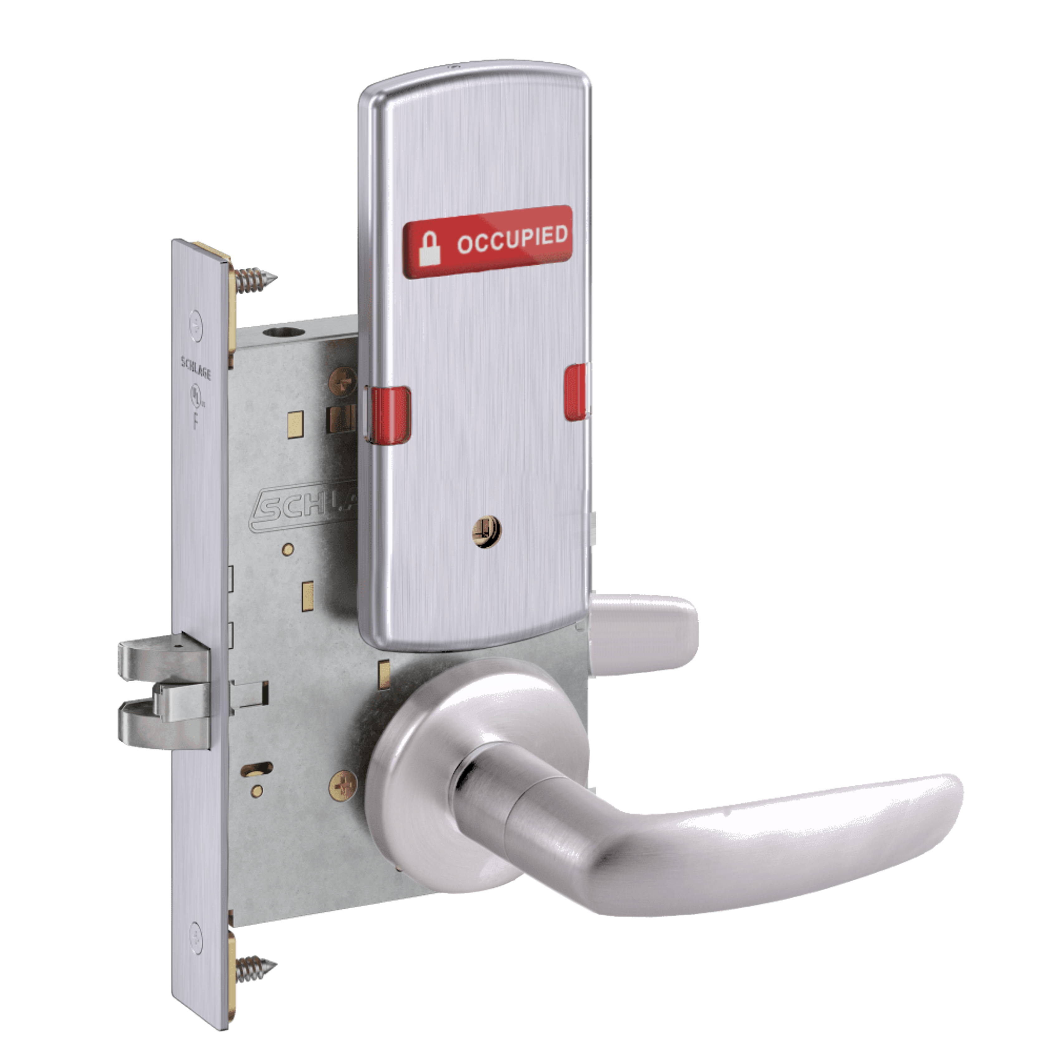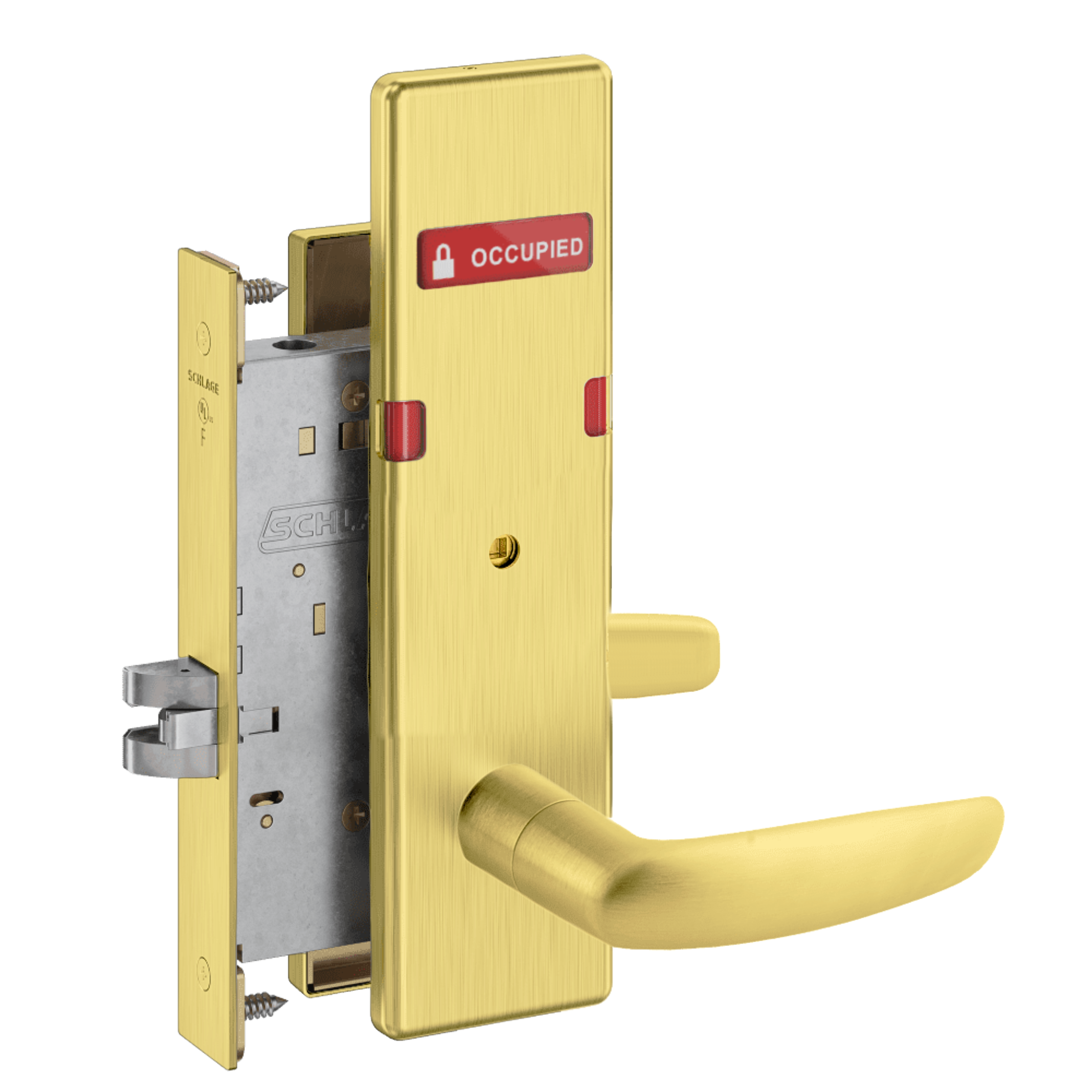 Schlage L9444 - Grade 1 Privacy With Deadbolt and Coin Turner Mortise Lock, Non-Keyed, Exterior Indicator "VACANT/OCCUPIED"