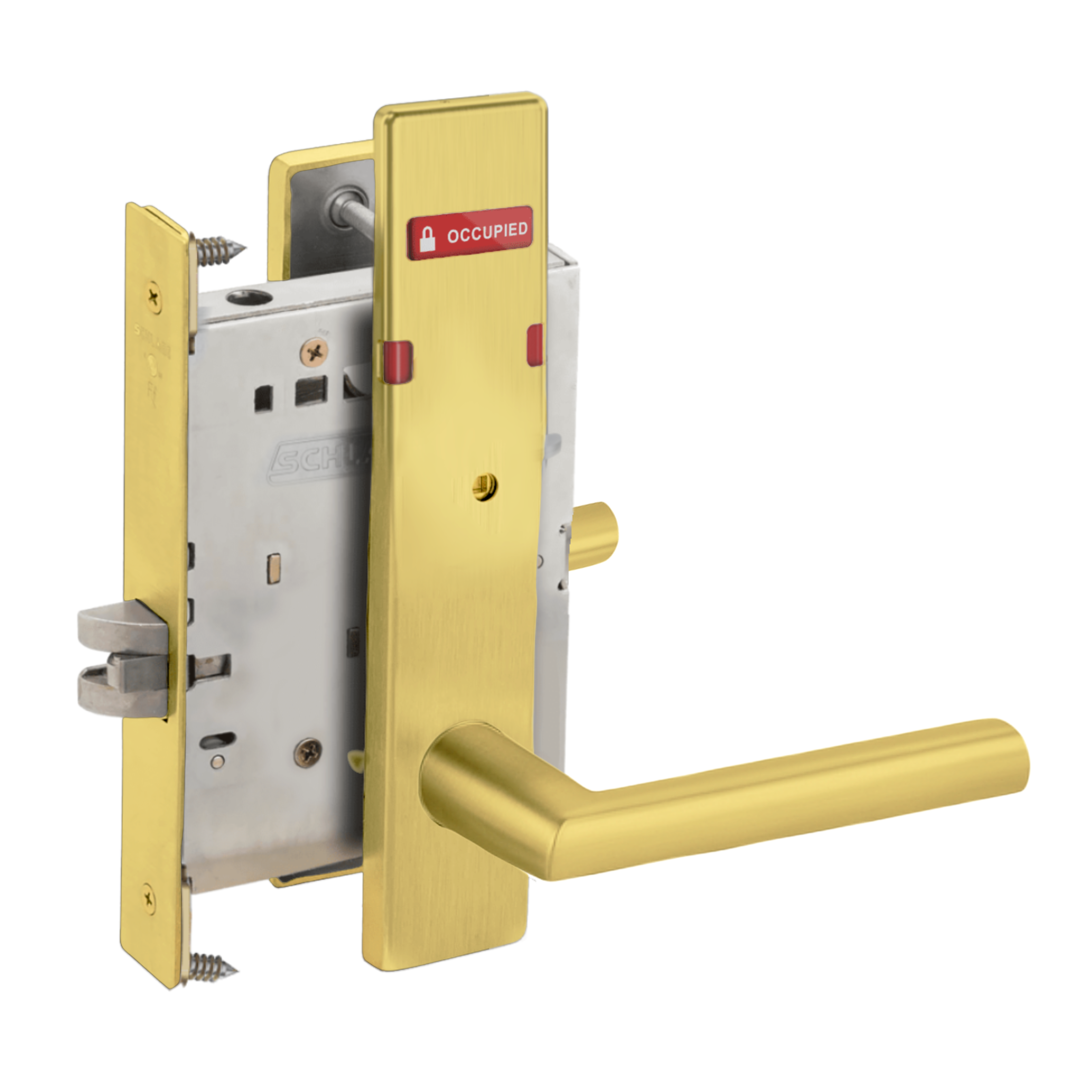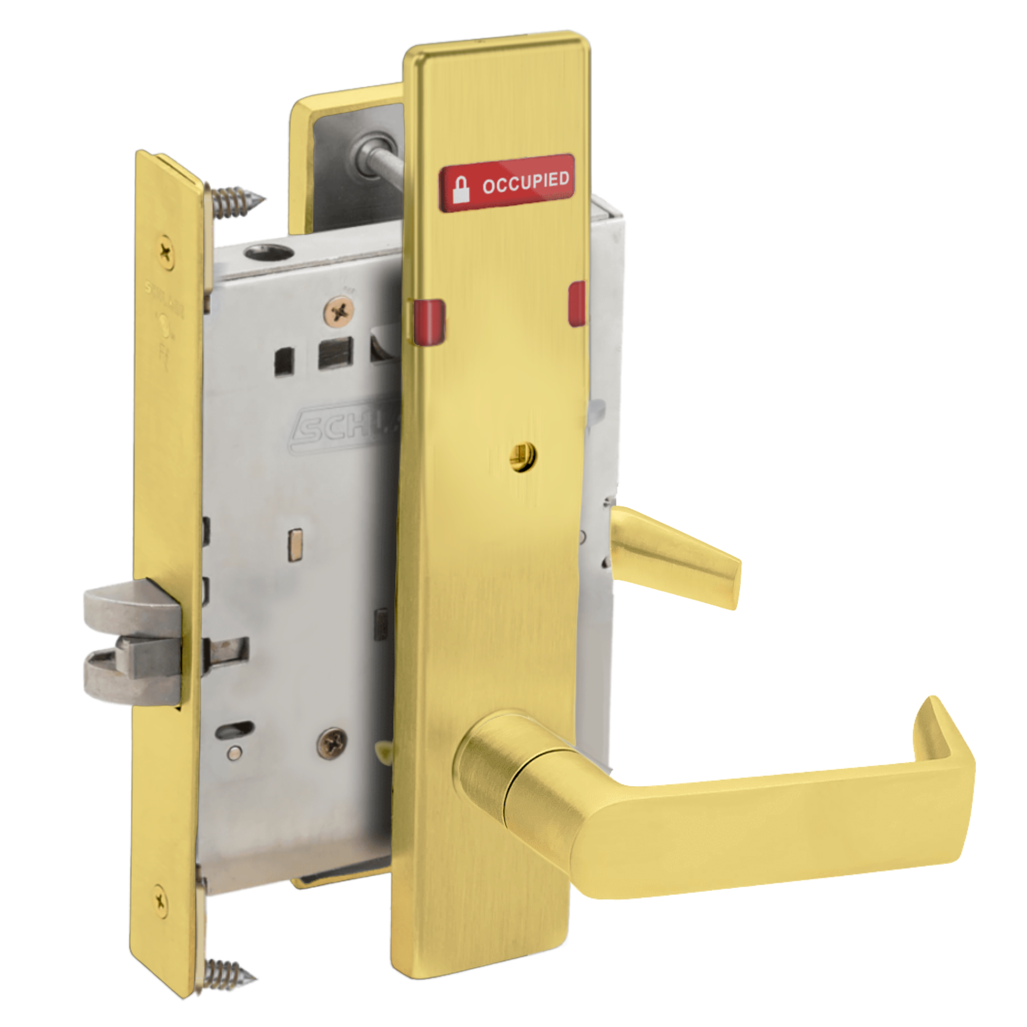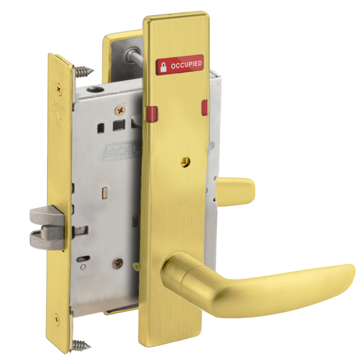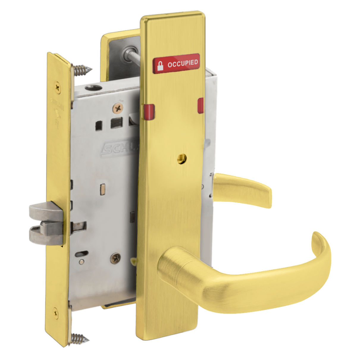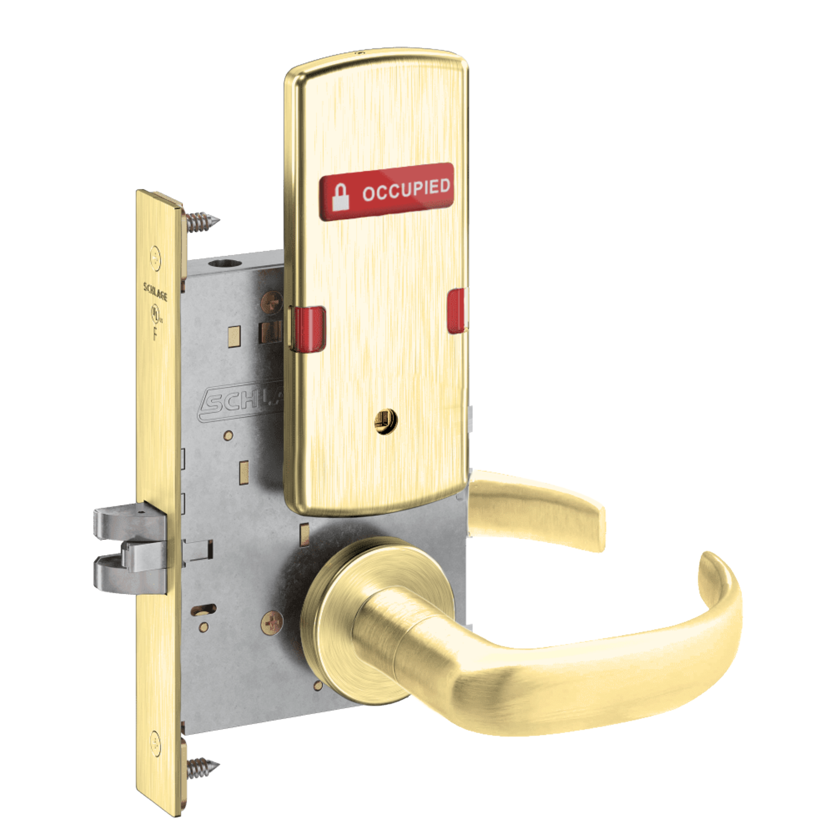 Schlage L9444 - Grade 1 Privacy With Deadbolt and Coin Turner Mortise Lock, Non-Keyed, Exterior Indicator "VACANT/OCCUPIED"