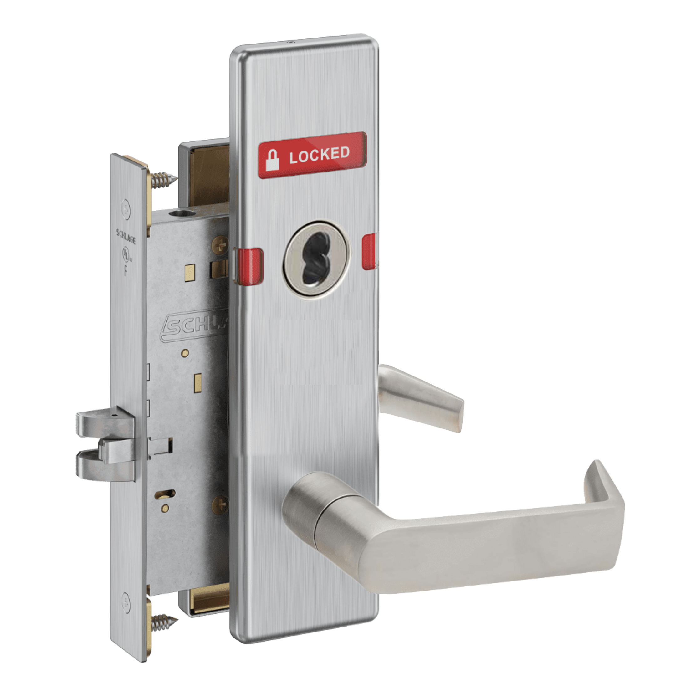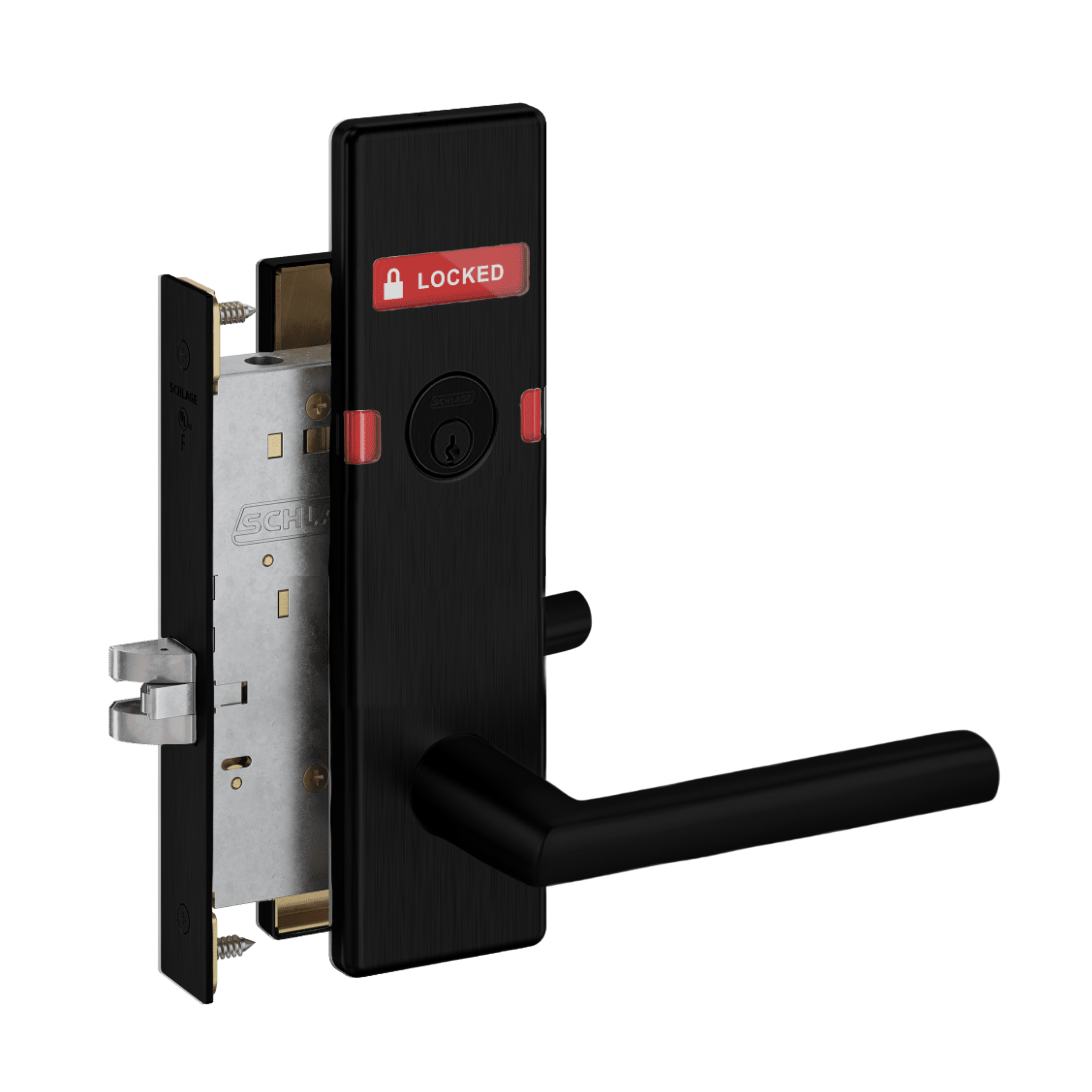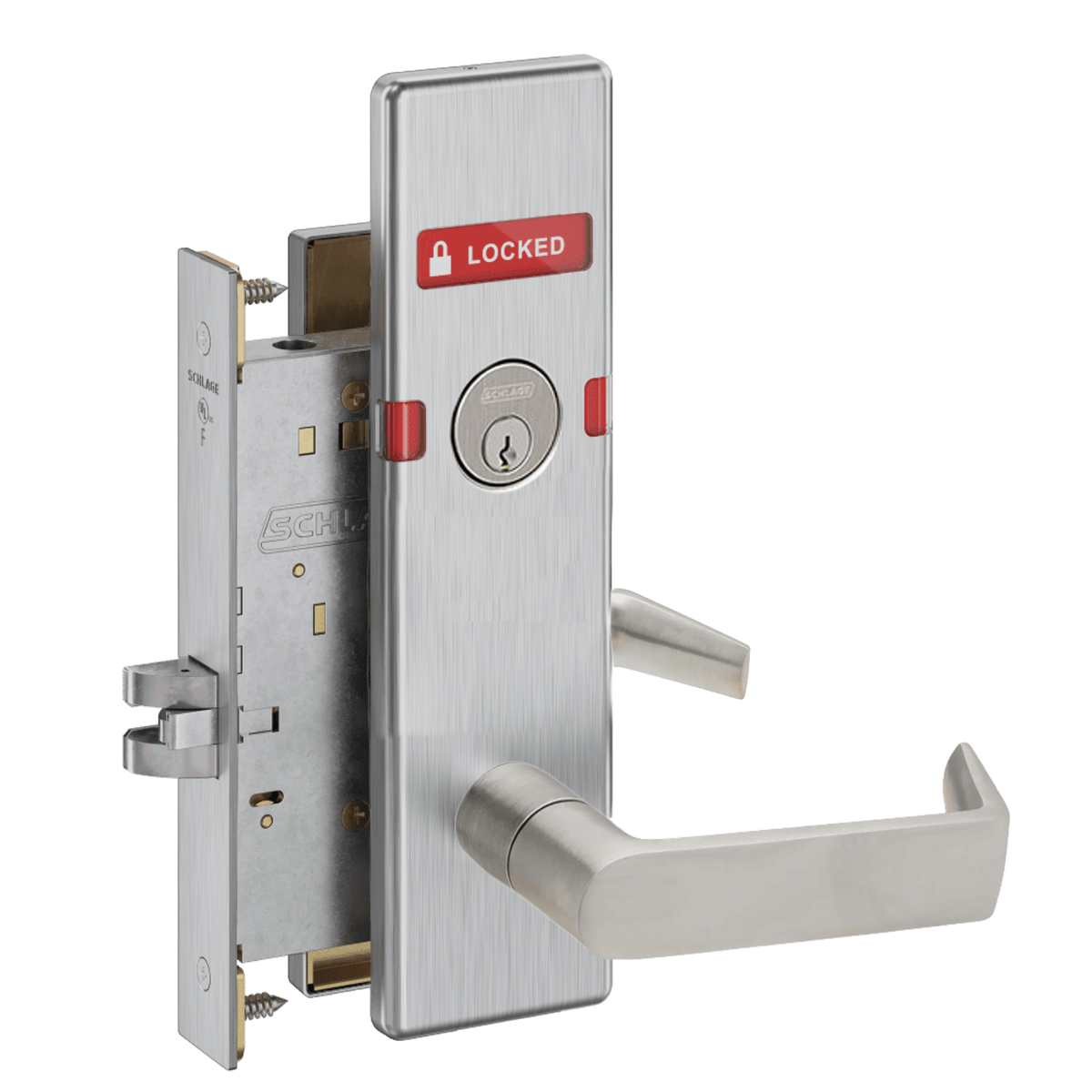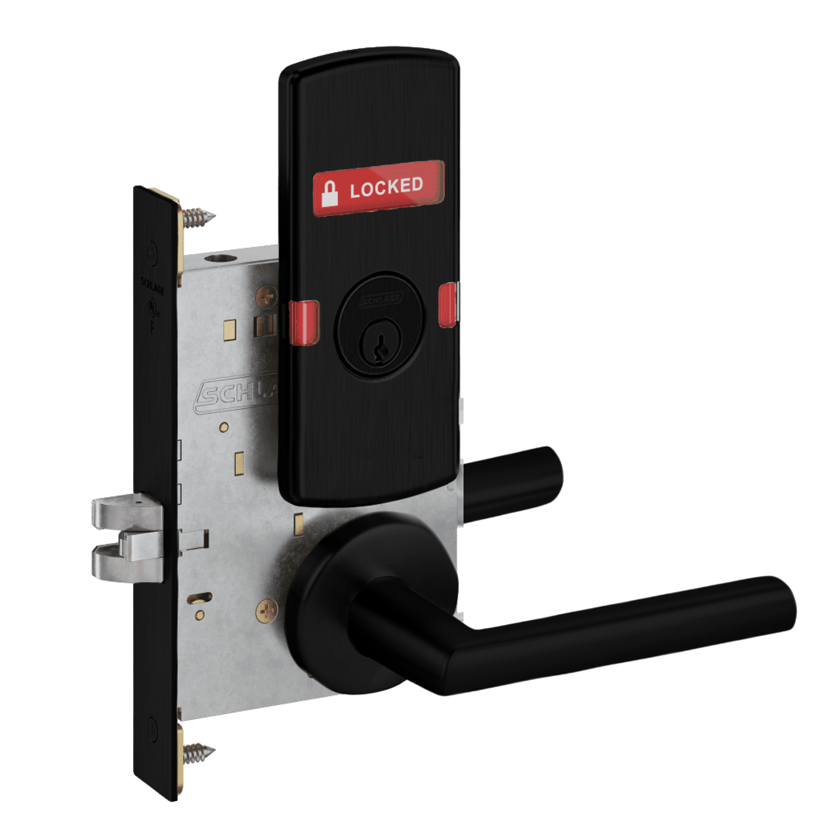180 degree visibility indicators, advanced motor-driven electrified functions, a universal lock case that supports 10 different functions, and the ability to suite across tubular, exit device, and multipoint locks allow the Schlage L Series to integrate seamlessly into any environment.