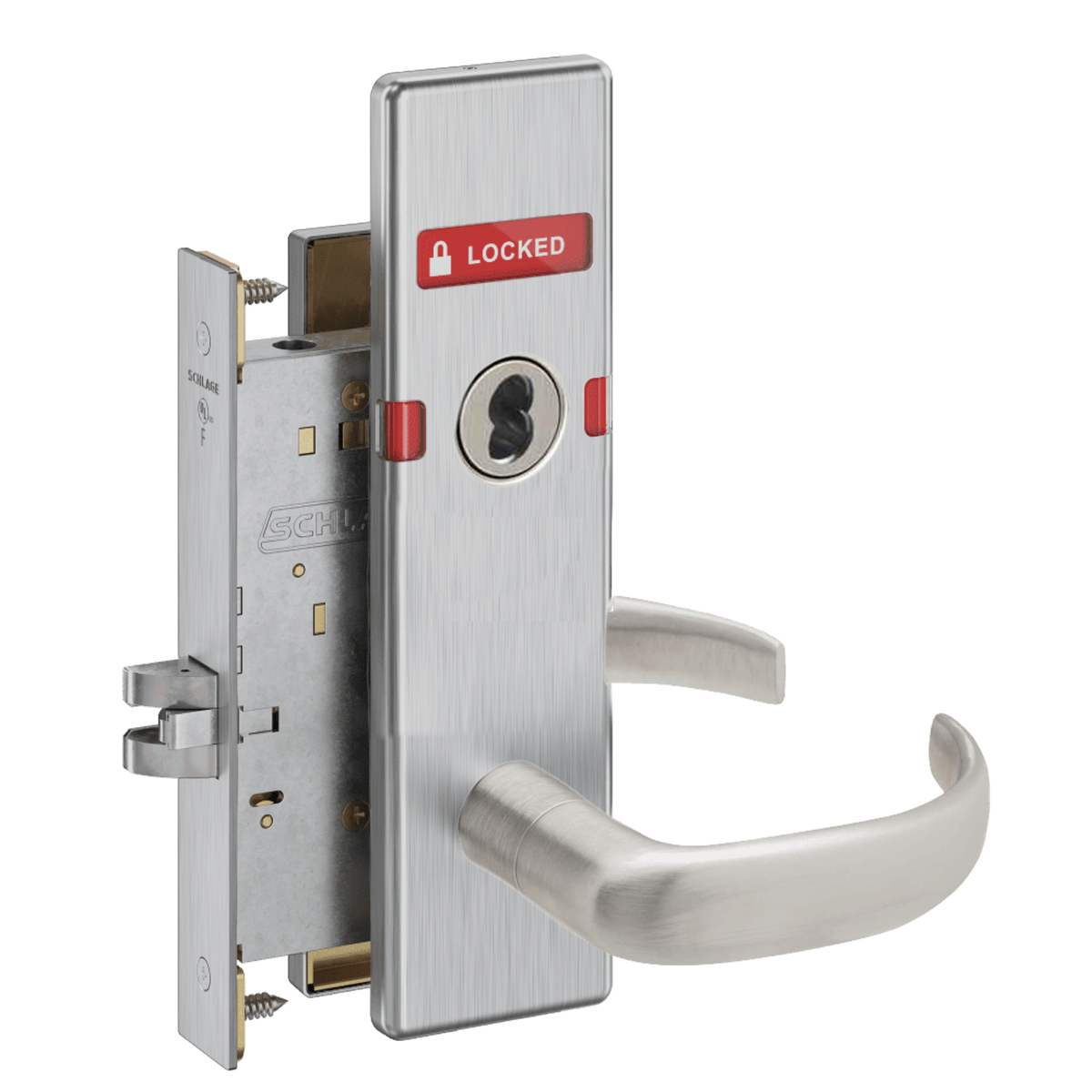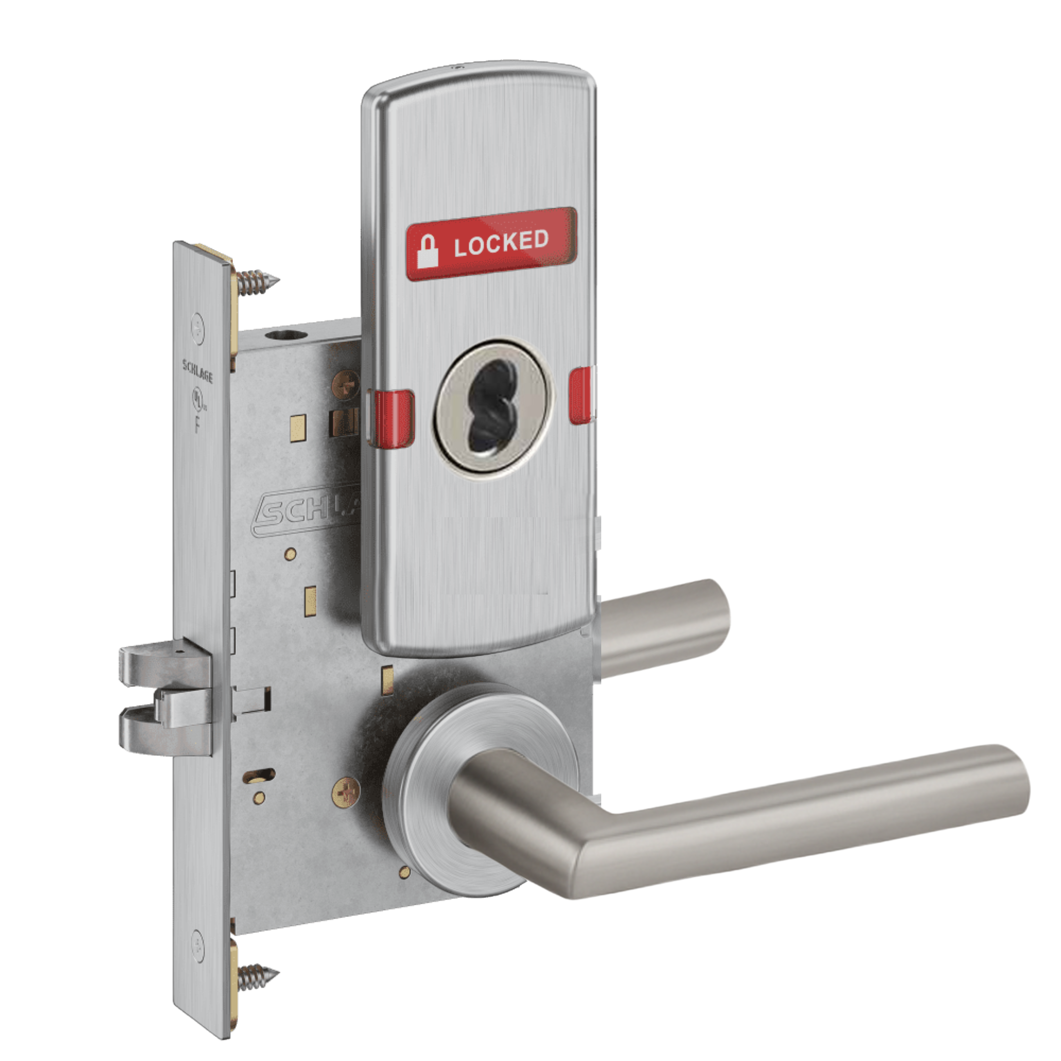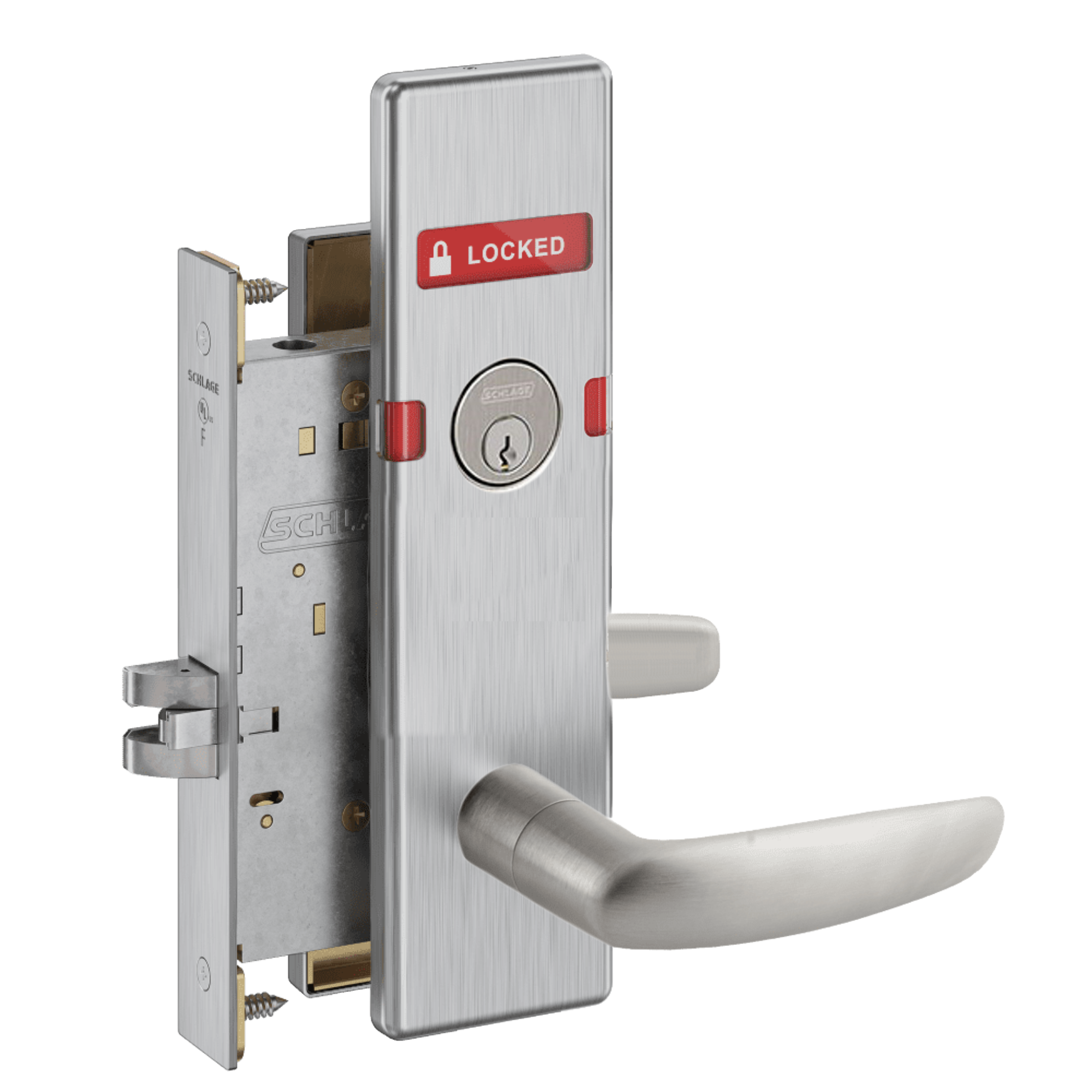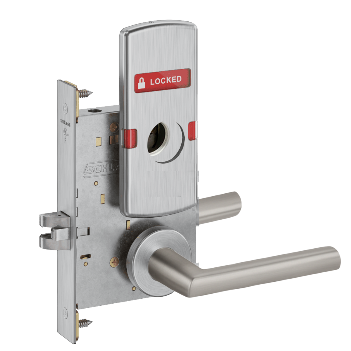 180 degree visibility indicators, advanced motor-driven electrified functions, a universal lock case that supports 10 different functions, and the ability to suite across tubular, exit device, and multipoint locks allow the Schlage L Series to integrate seamlessly into any environment.