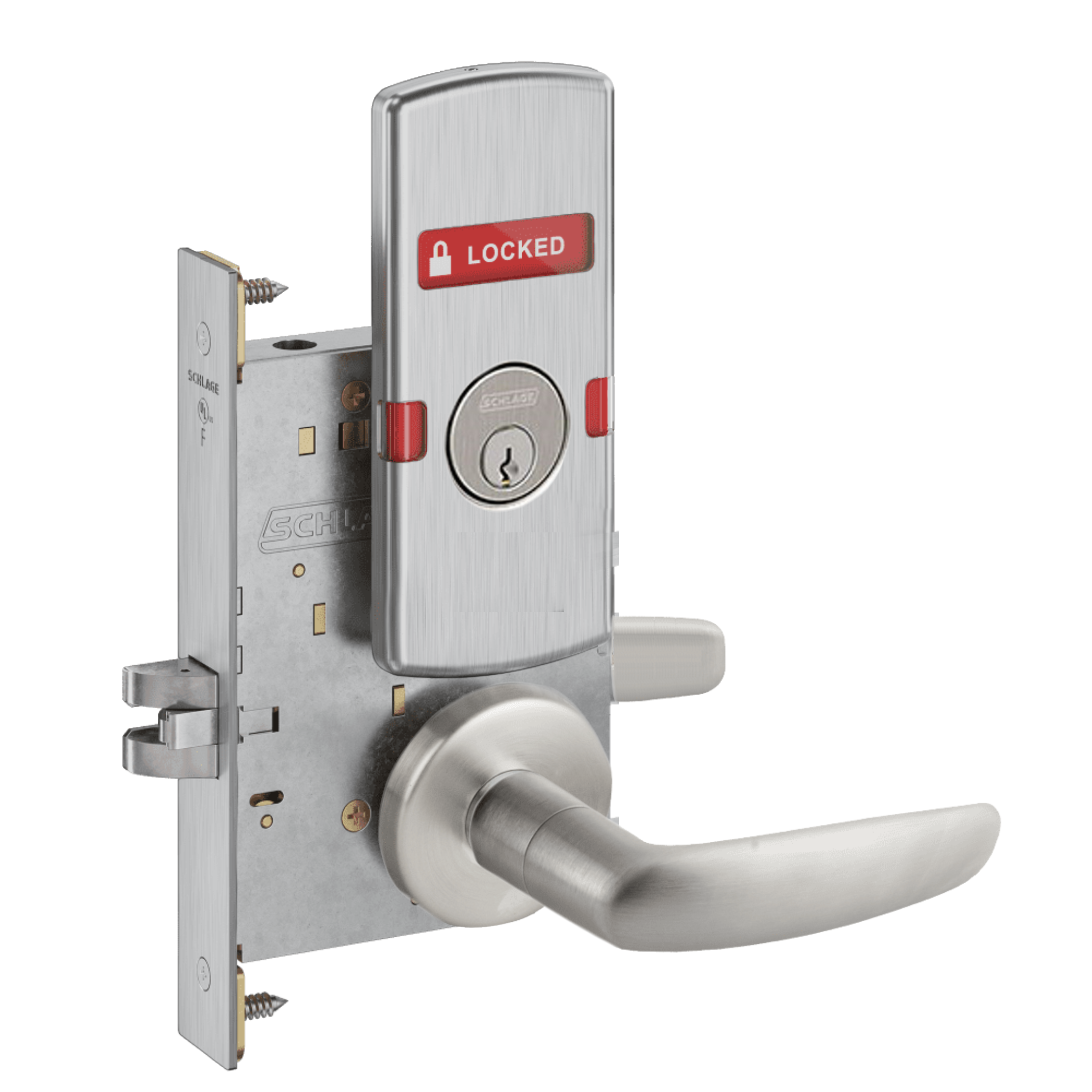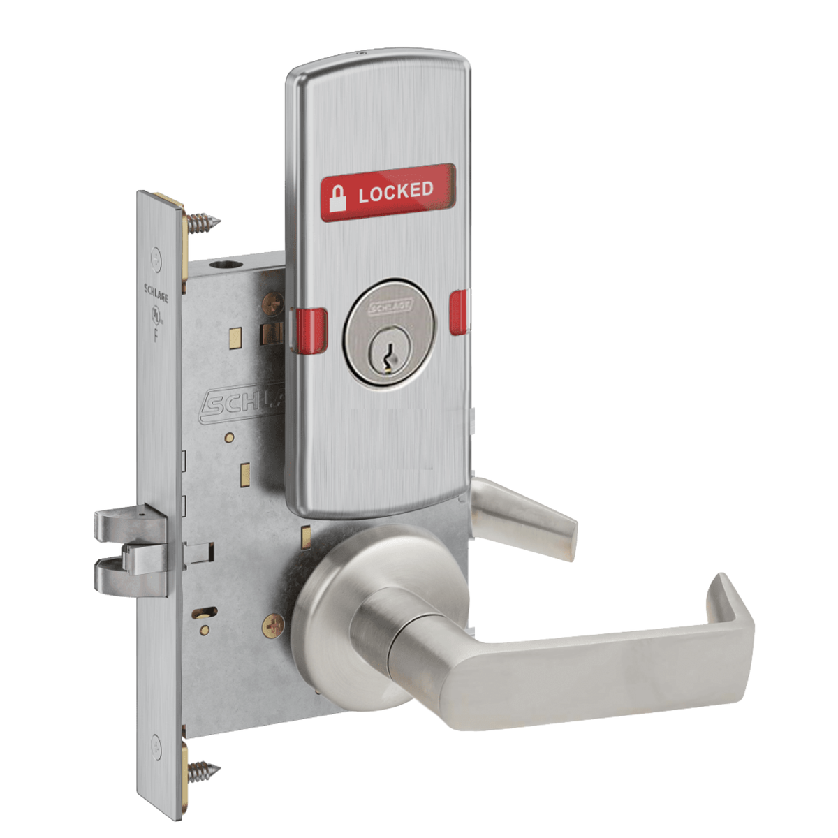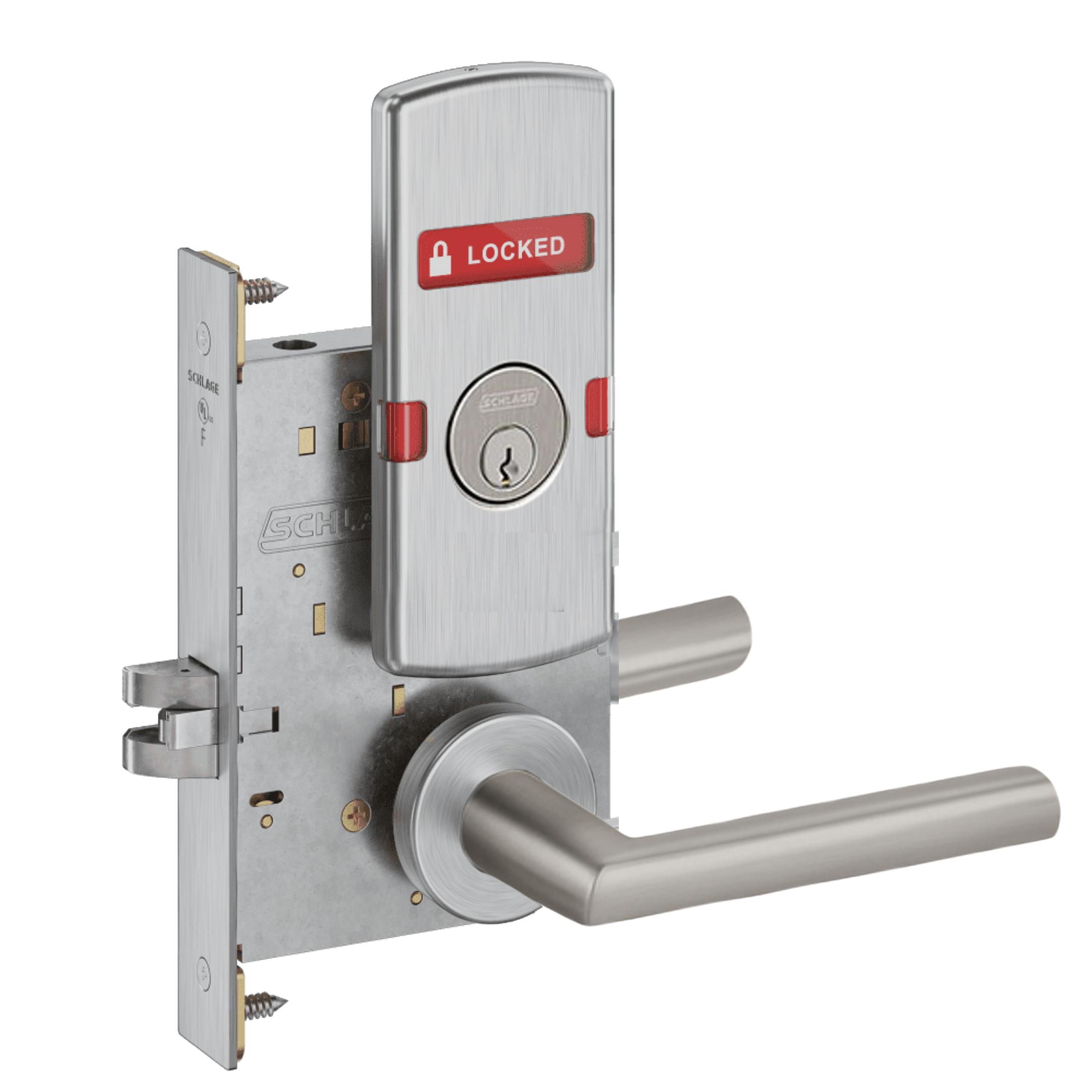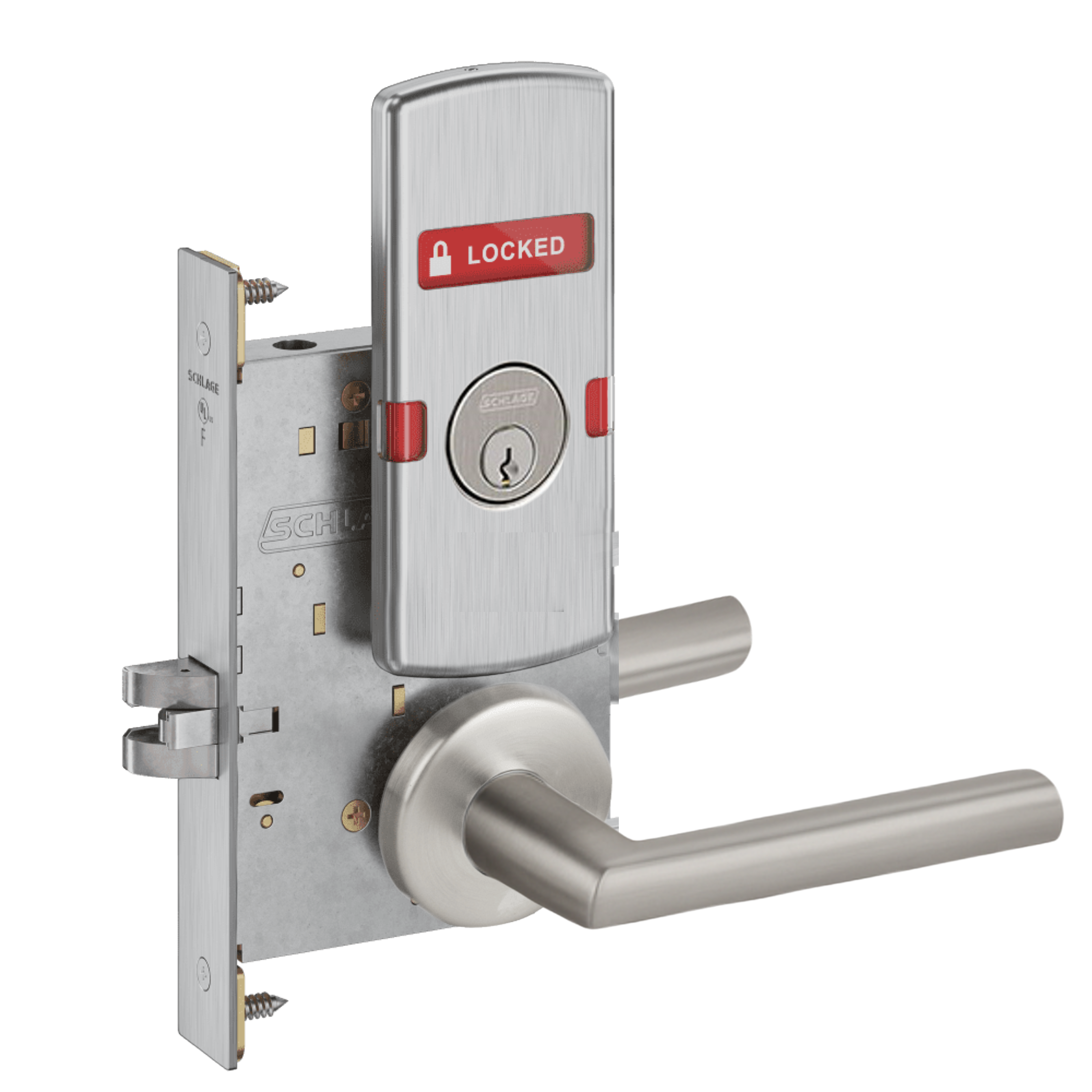 180 degree visibility indicators, advanced motor-driven electrified functions, a universal lock case that supports 10 different functions, and the ability to suite across tubular, exit device, and multipoint locks allow the Schlage L Series to integrate seamlessly into any environment.