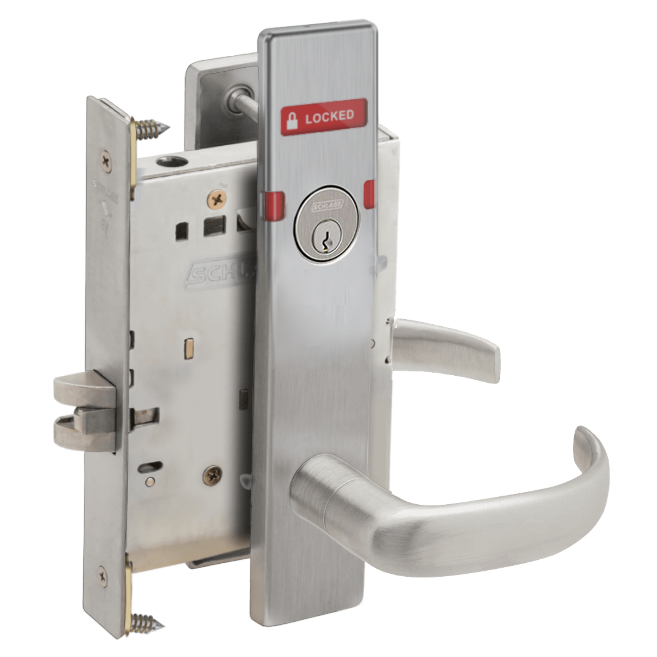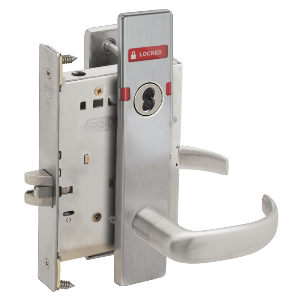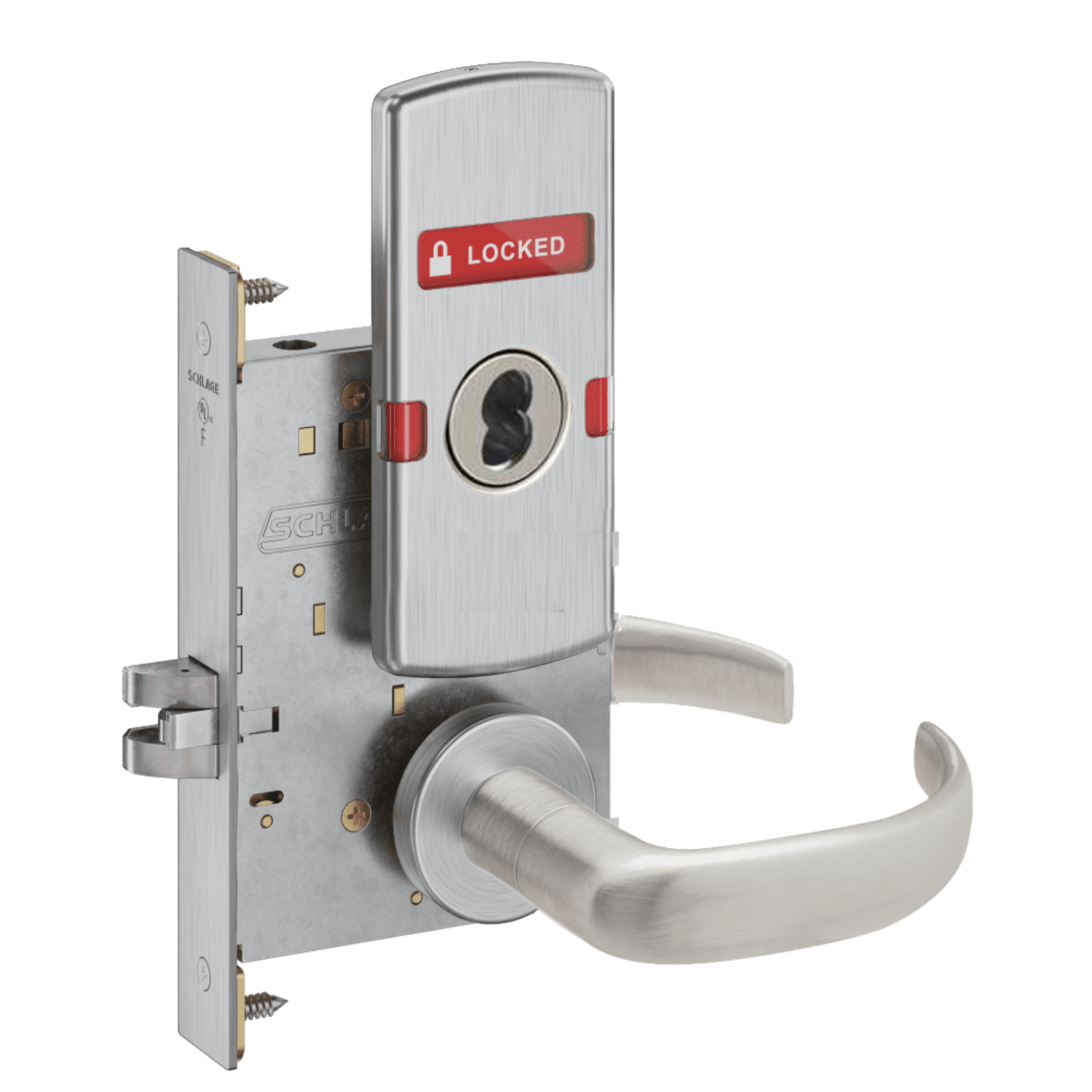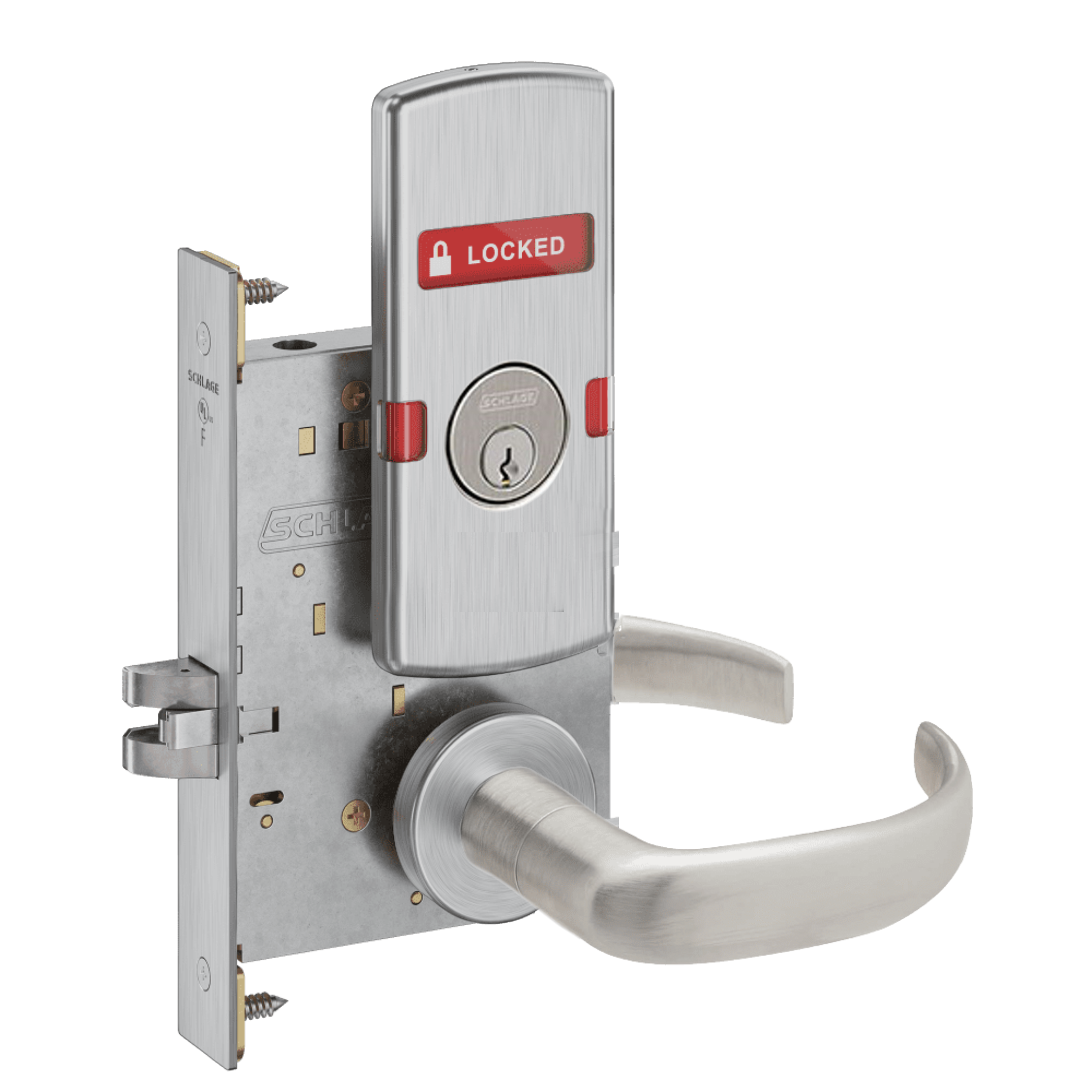 180 degree visibility indicators, advanced motor-driven electrified functions, a universal lock case that supports 10 different functions, and the ability to suite across tubular, exit device, and multipoint locks allow the Schlage L Series to integrate seamlessly into any environment.