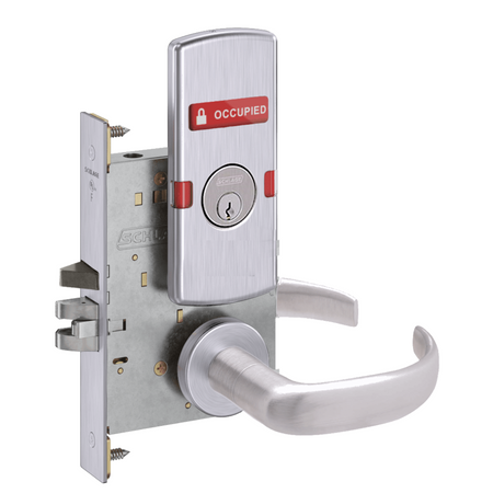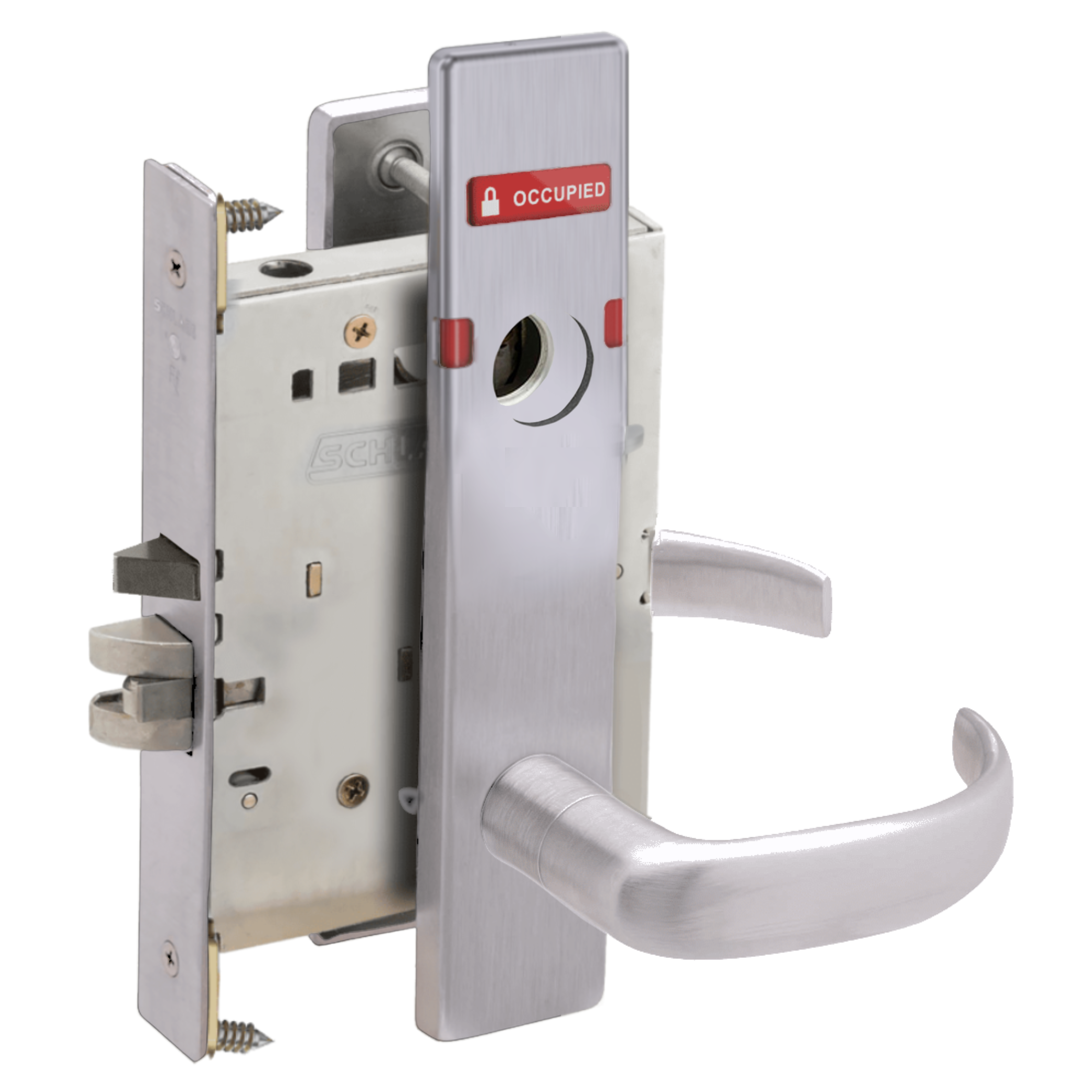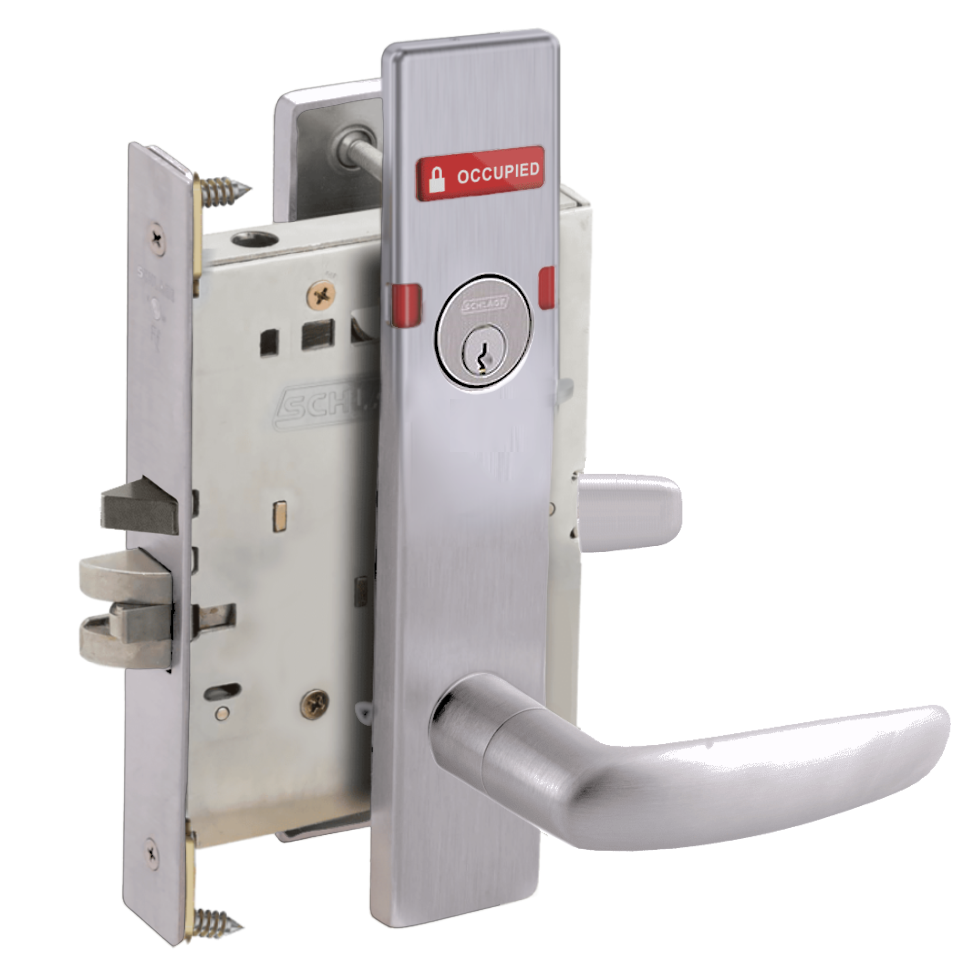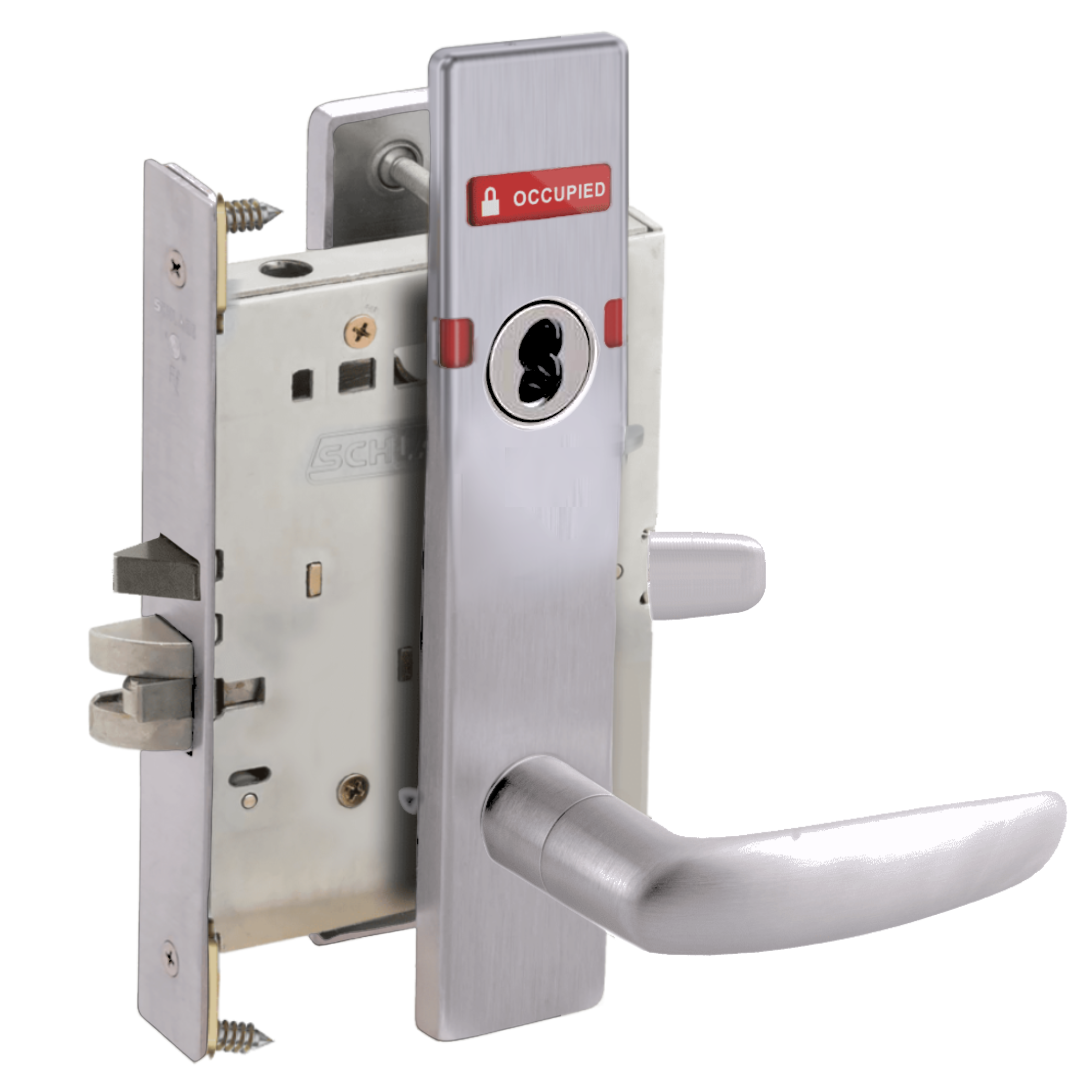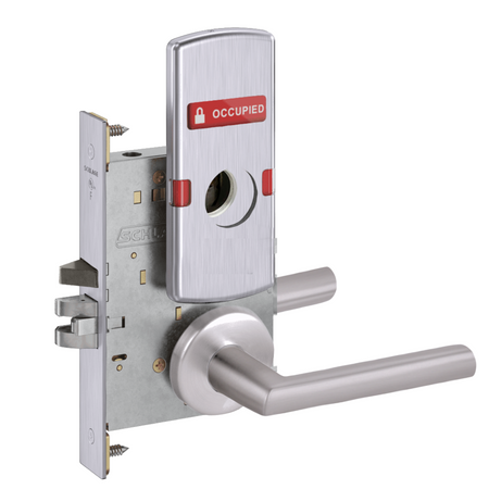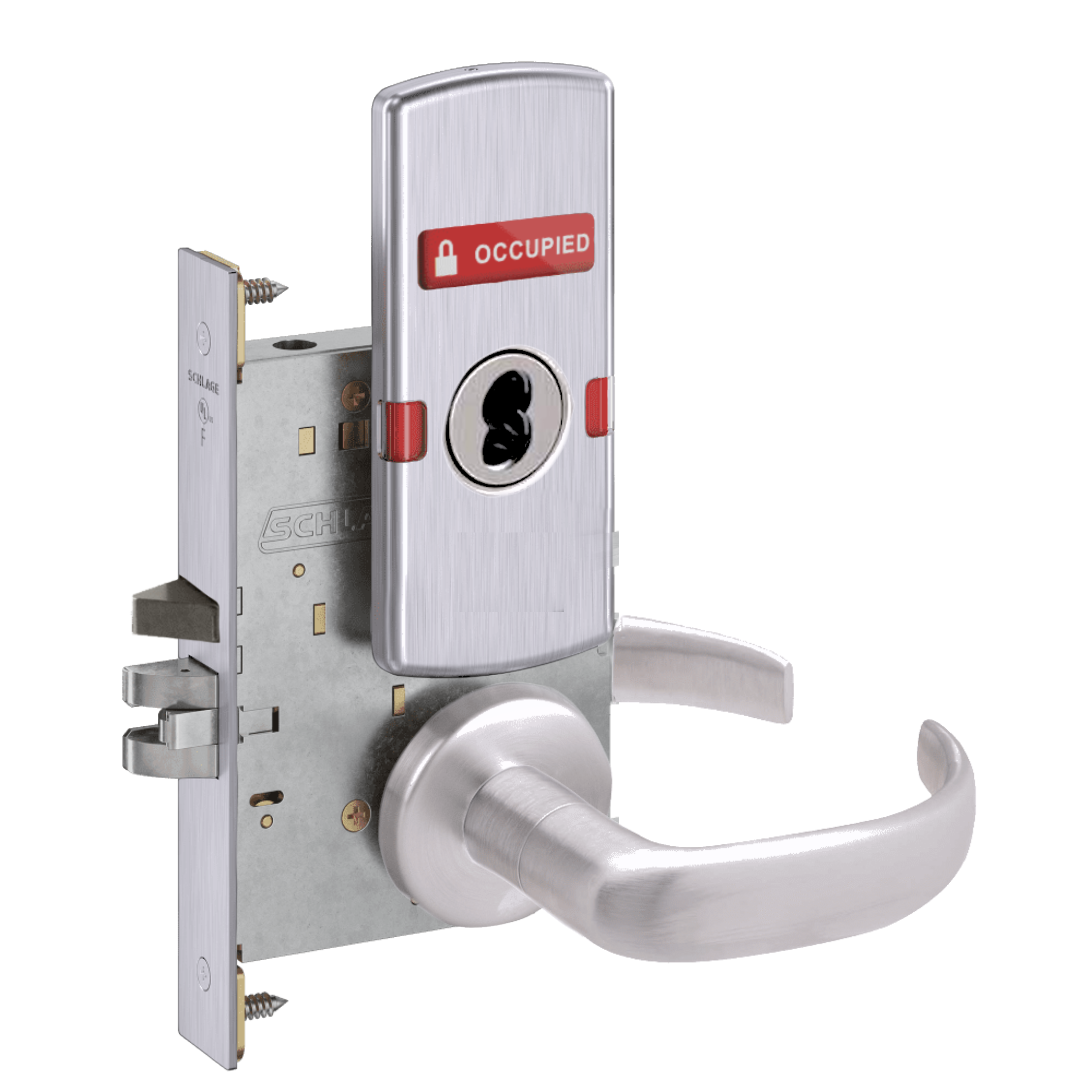 TITLE TAG: Schlage LV9056 - Vandlgard Entrance/Office Mortise Lock with Automatic Unlocking - Grade 1 Non-Deadbolt Function Single Cylinder Keyed Lever Lock, Exterior Indicator "VACANT/OCCUPIED"