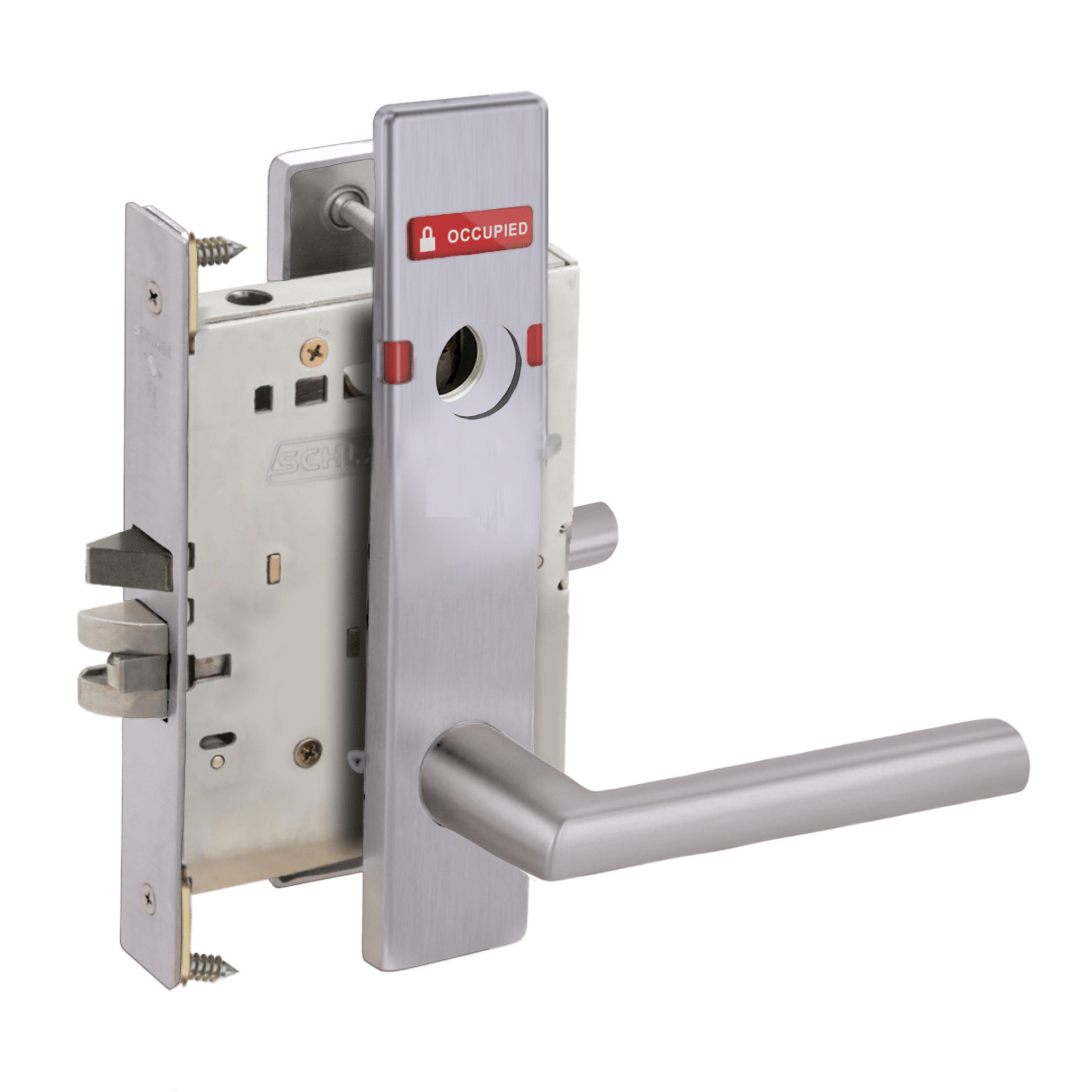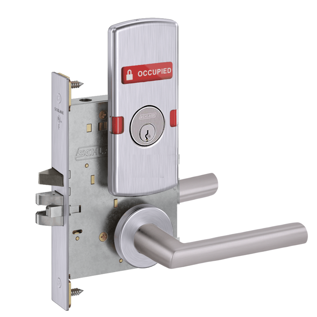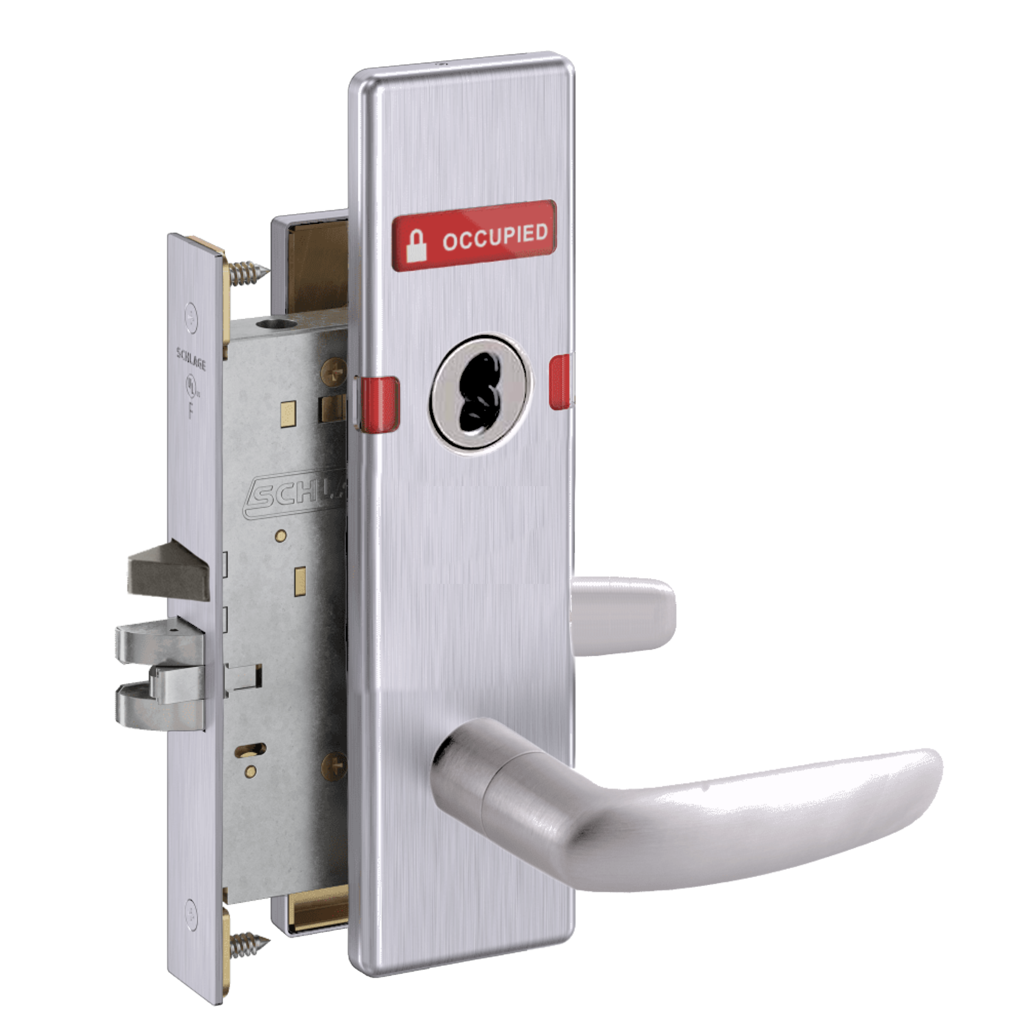 180 degree visibility indicators, advanced motor-driven electrified functions, a universal lock case that supports 10 different functions, and the ability to suite across tubular, exit device, and multipoint locks allow the Schlage L Series to integrate seamlessly into any environment.