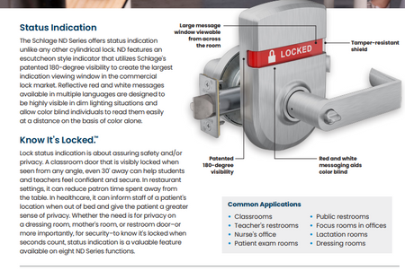 • ND78 Classroom security lock , 180-degree lockdown (ANSI F110) (*) with Vandlgard® ND98 (*)