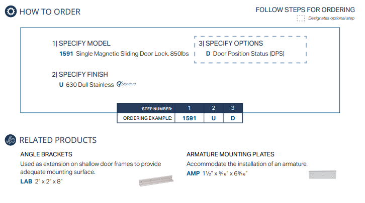 SDC’s 1590 series electromagnetic sliding door locks are compact locks with 850lbs of holding power packed into a small steel mortise case. The lock is ideal for securing sliding or swinging, manual or automatic doors. Its durability for high frequency use and its mortise installation make it the choice of specification writers, owners and architects.