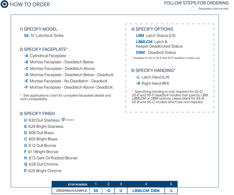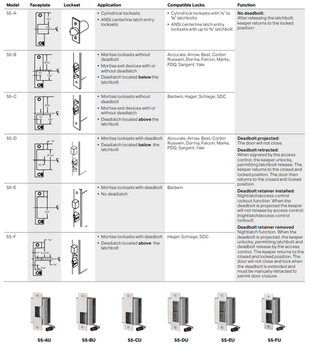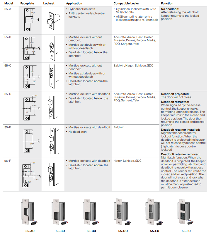 55 series strikes retrofit existing ANSI 47/8” strike prep – no centerline relocation required.