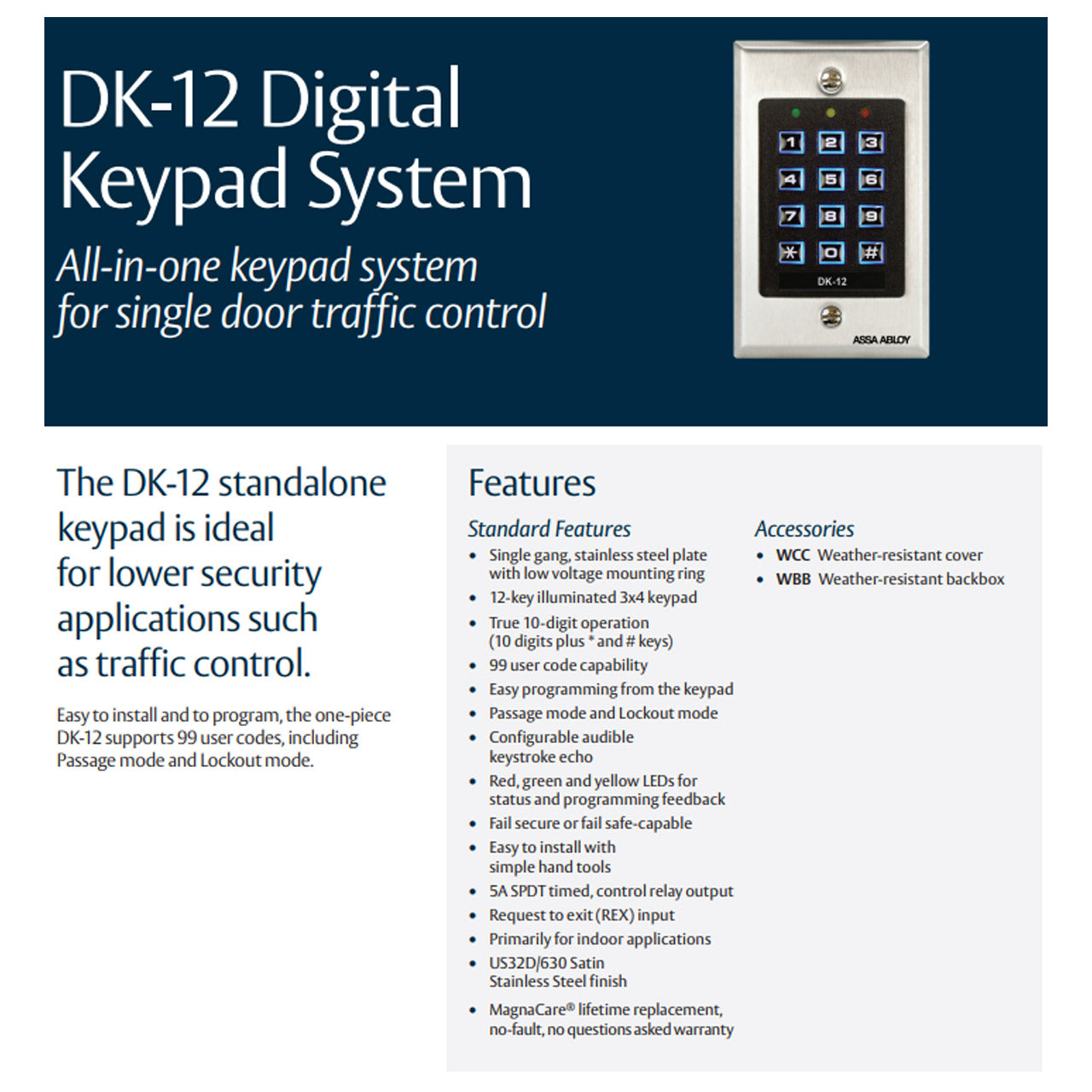 - Stainless steel backplate with 12 illuminated keys (10 digits + "*" and "#" keys)