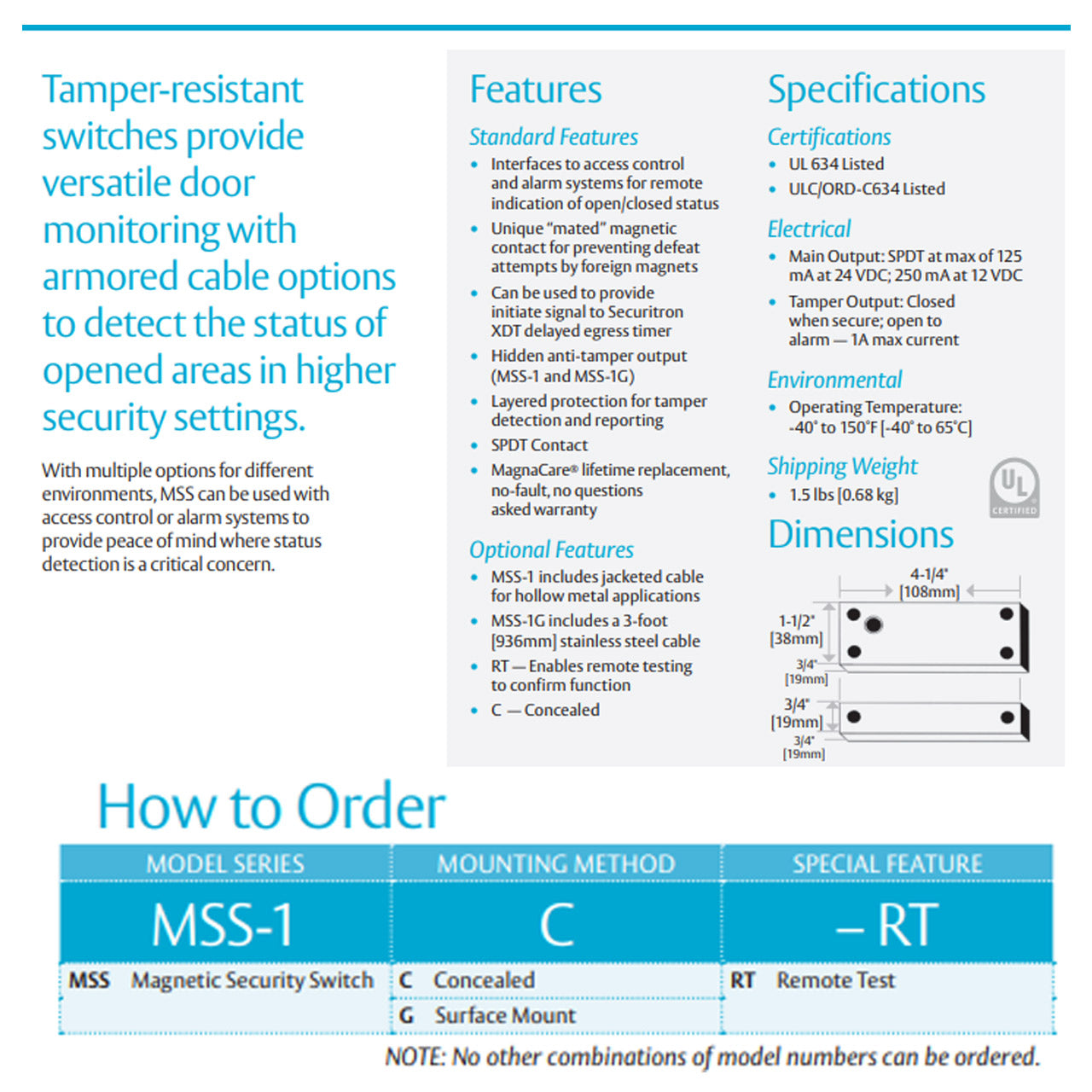 TITLE TAG: Securitron MSS Magnetic High Security Door Position Switch